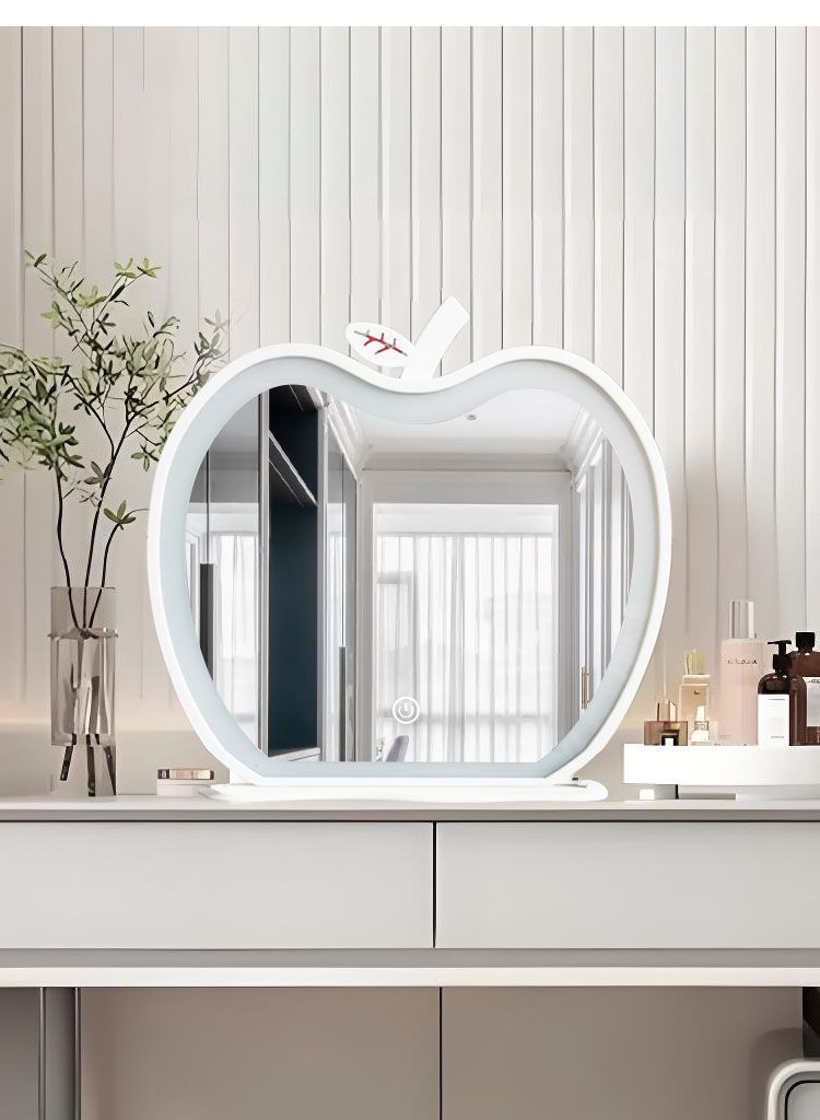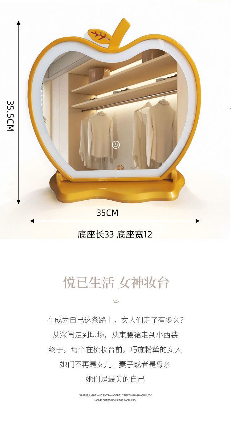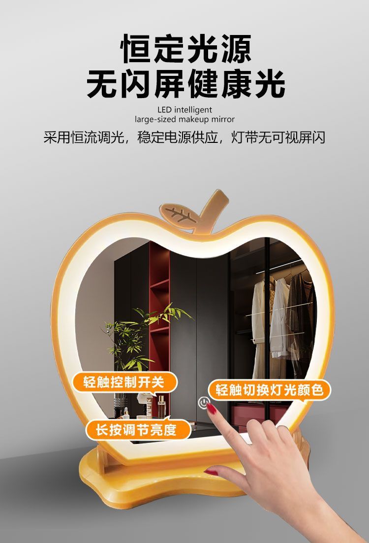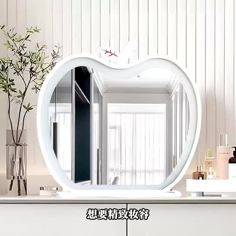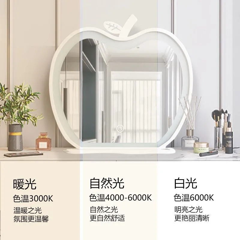 网红苹果镜子化妆镜台式LED卧室镜子带灯桌面智能梳妆镜家用镜子