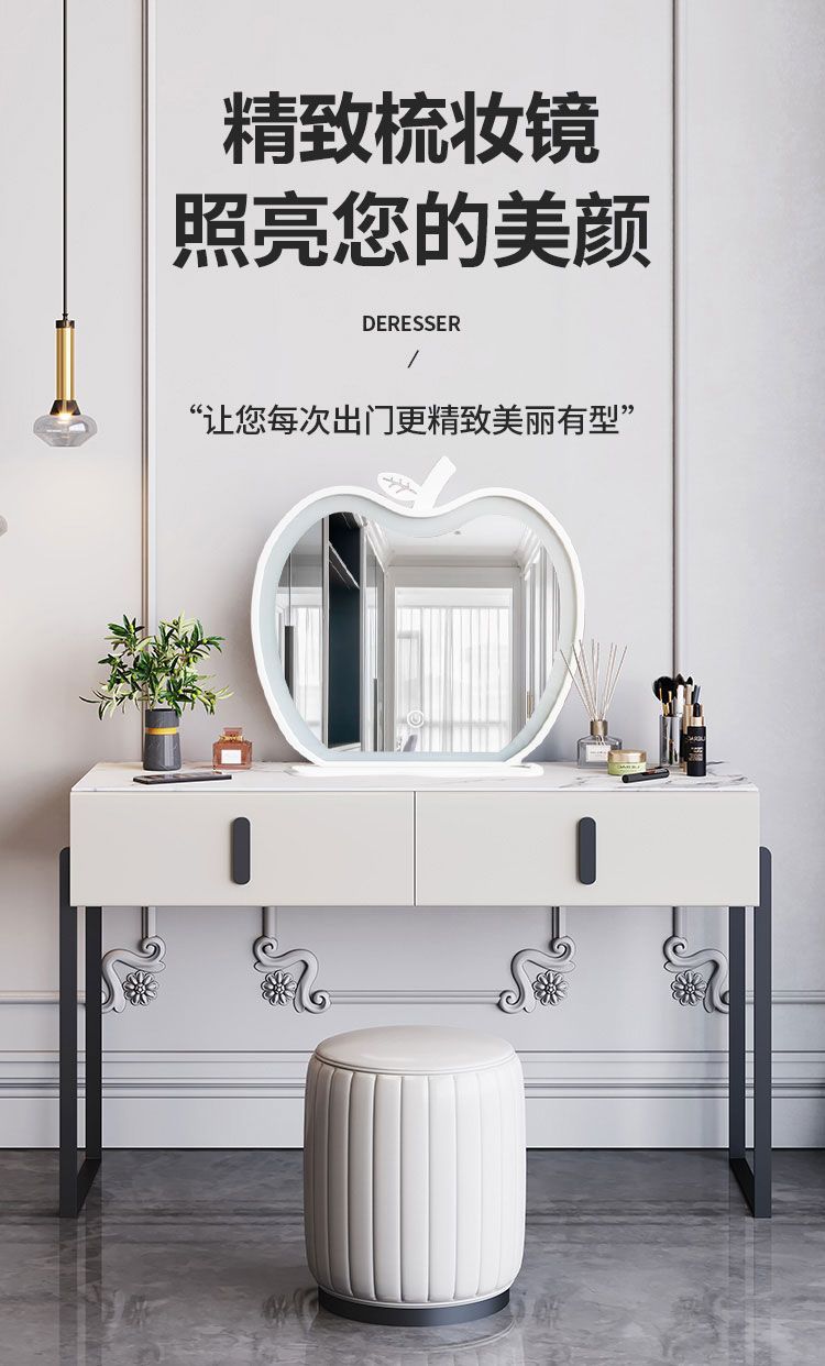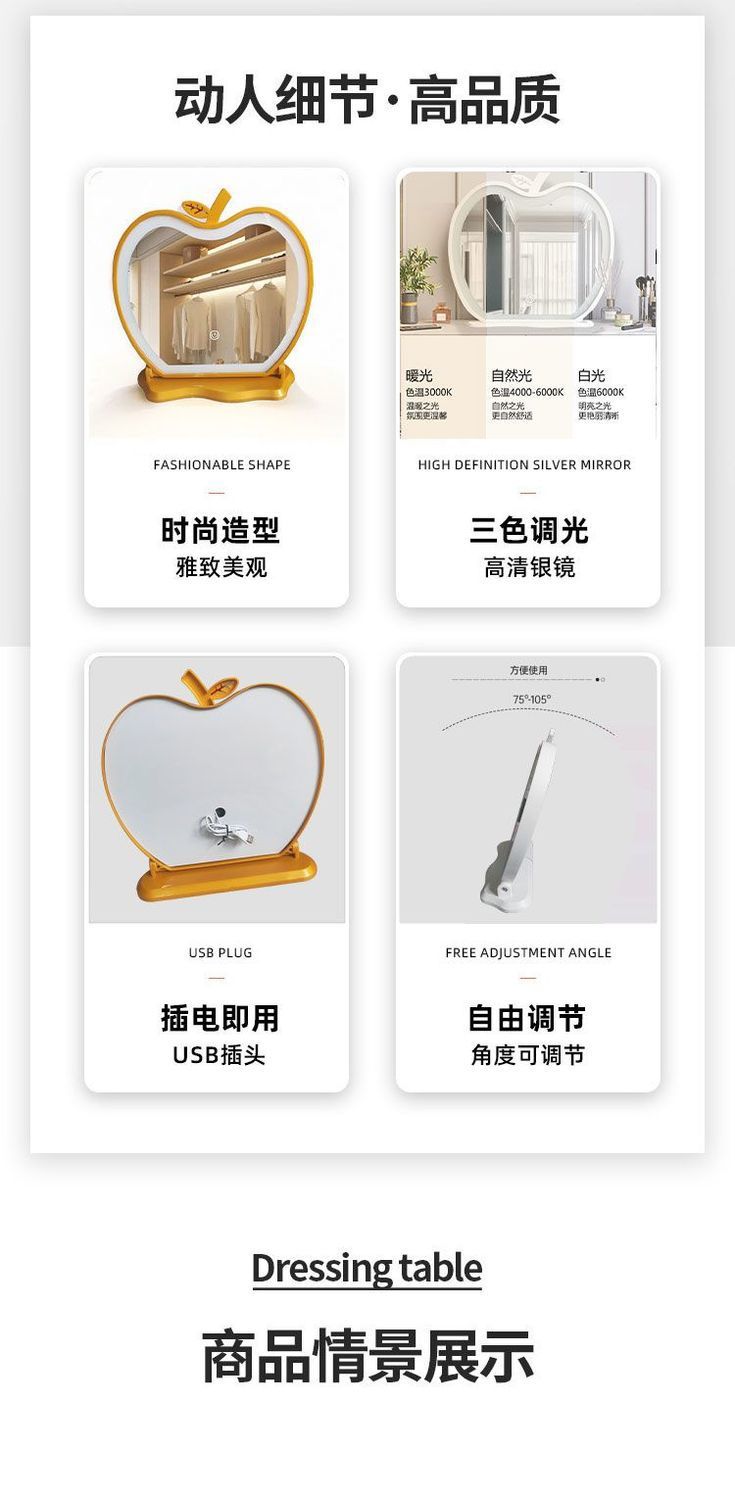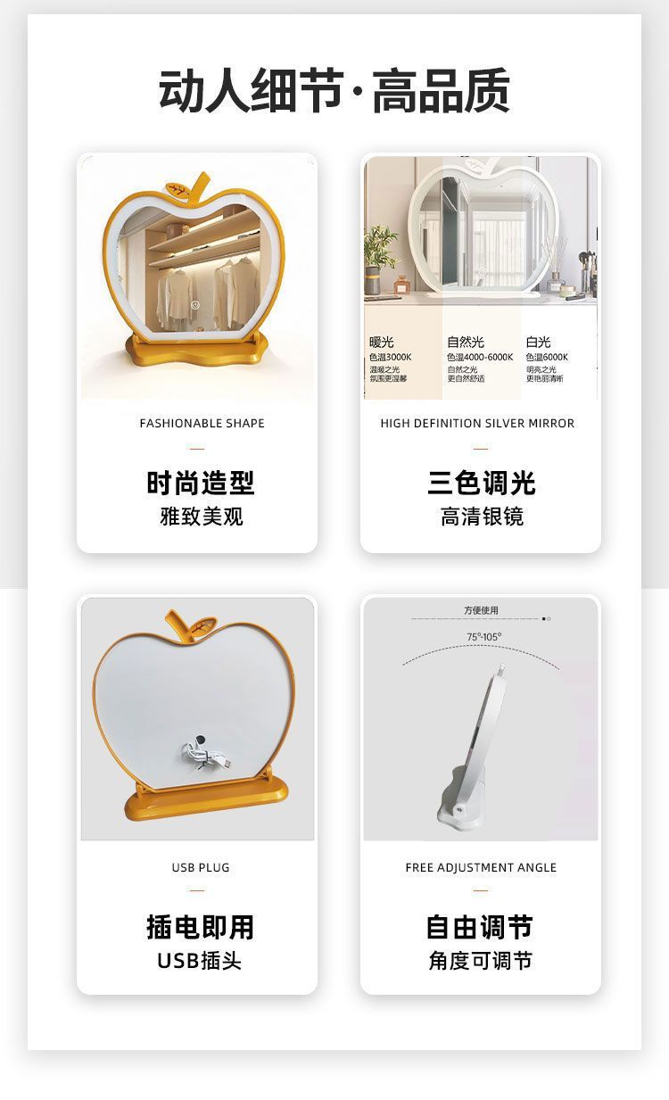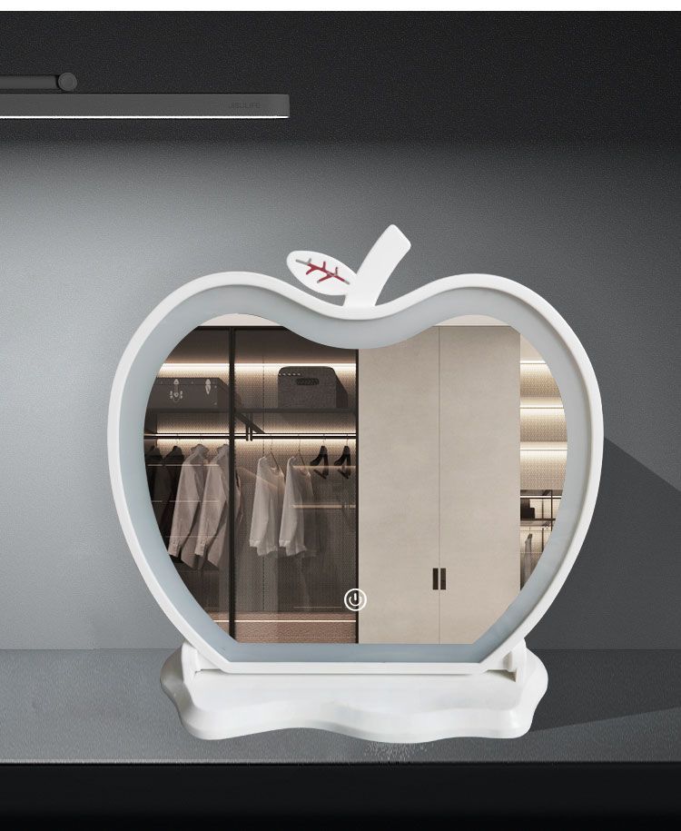 网红苹果镜子化妆镜台式LED卧室镜子带灯桌面智能梳妆镜家用镜子