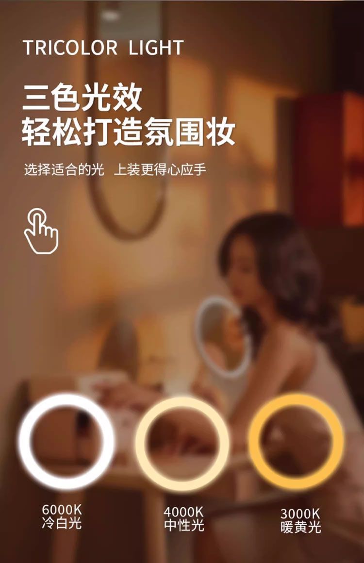 国境を越えたLED多段階調整レンズ付き化粧鏡、インスタ映えするドレッサー用卓上鏡、自宅寝室用補助照明付き鏡