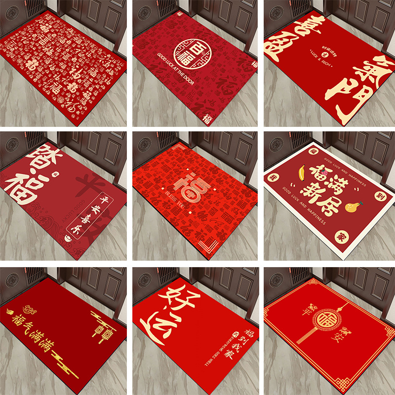 新中国式入戸ドアマット赤いお祝い玄関滑り止めマット家庭用玄関玄関ドアホールマット