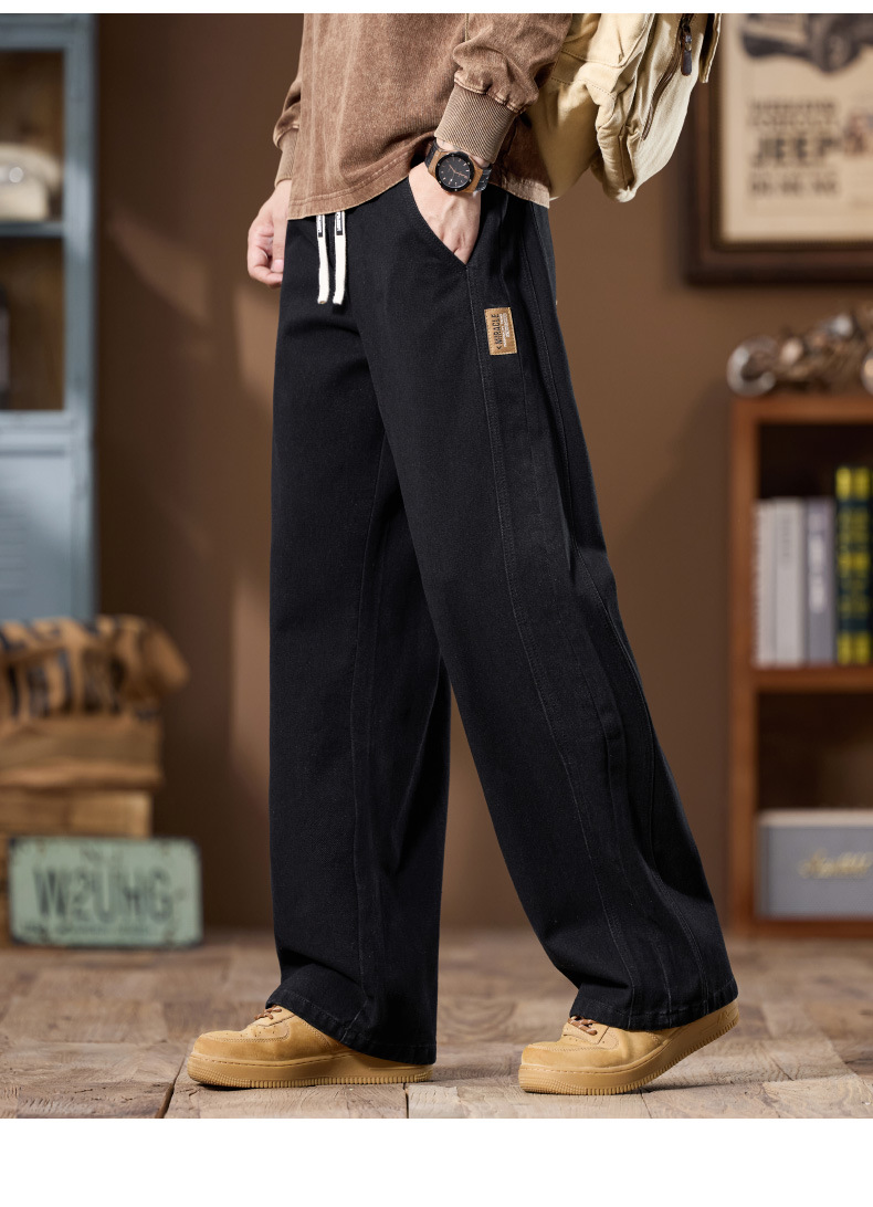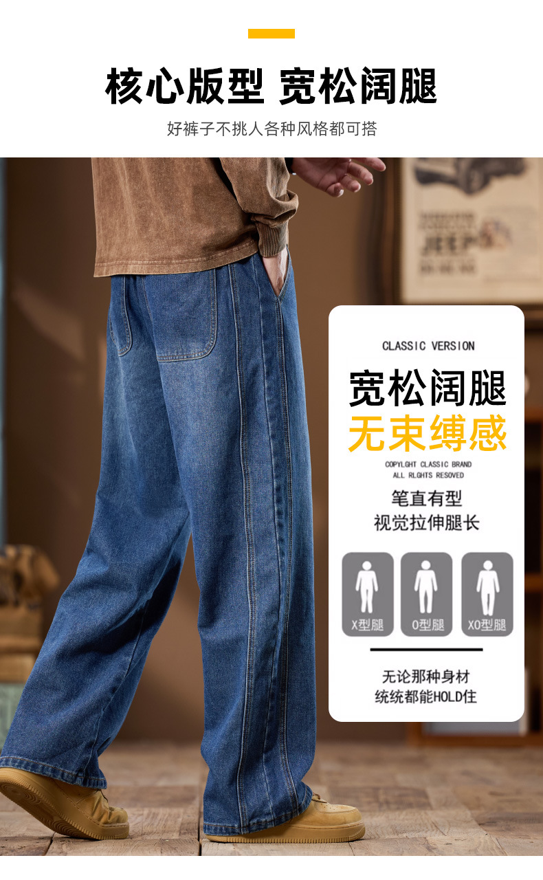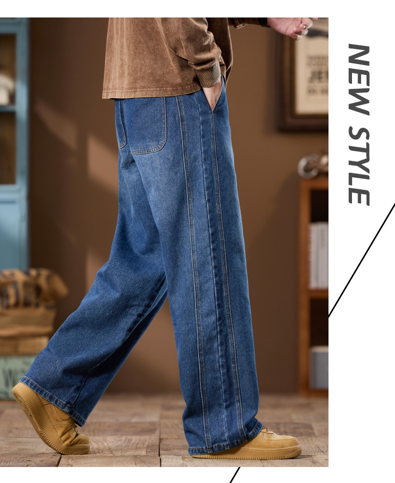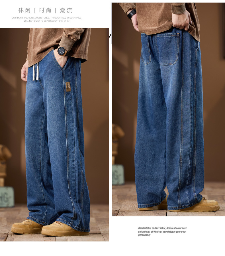 1502|大码男装秋冬美式高街阔腿牛仔裤宽松百搭垂感水洗直筒长裤