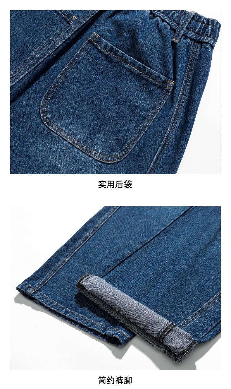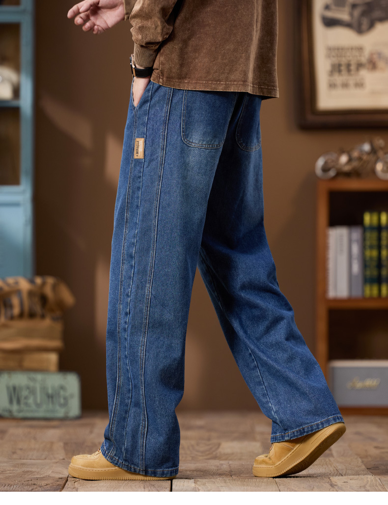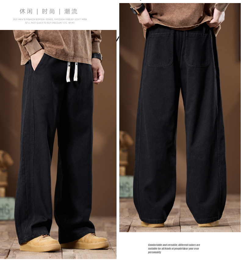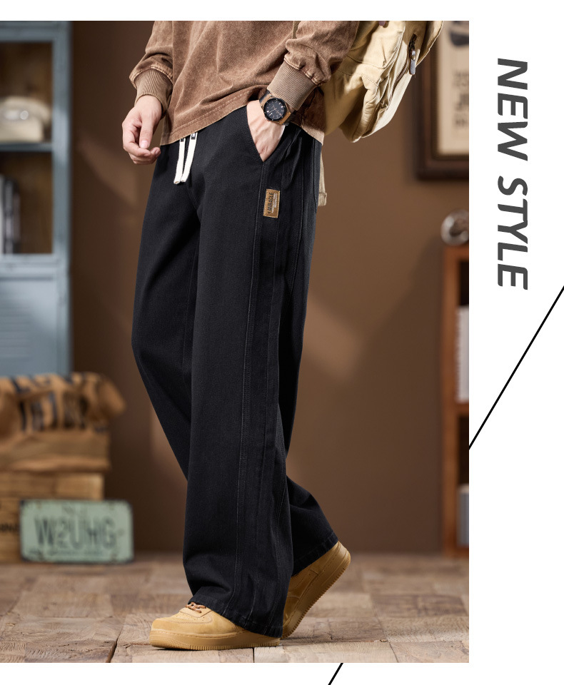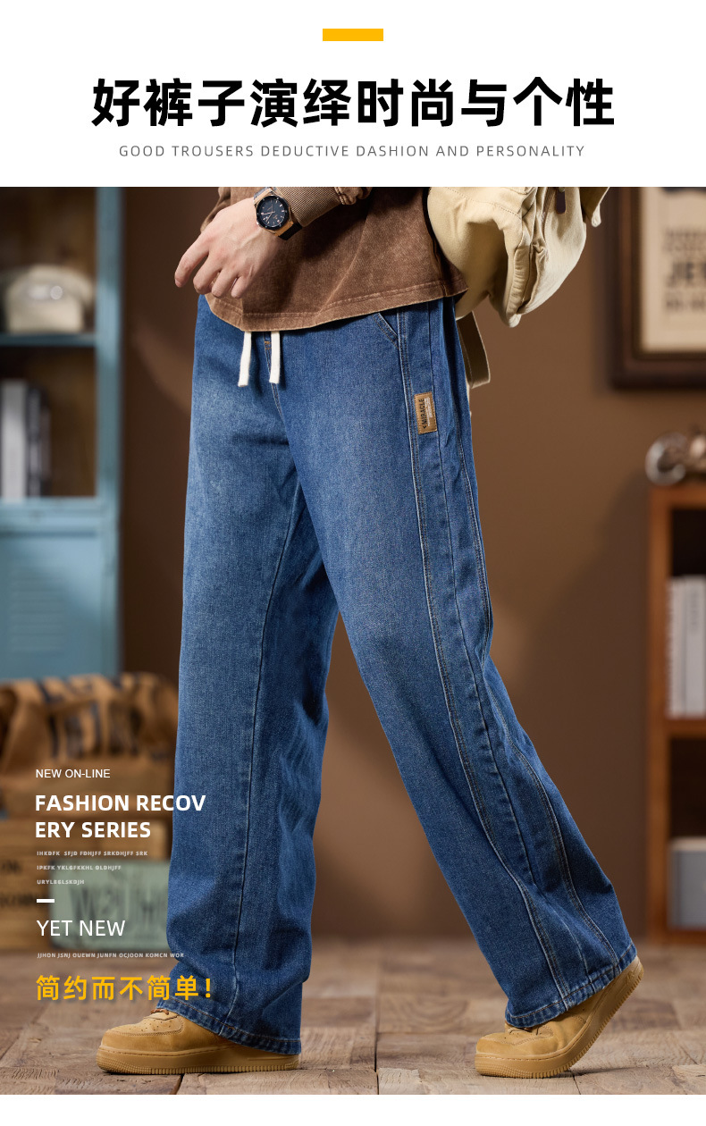 1502|大码男装秋冬美式高街阔腿牛仔裤宽松百搭垂感水洗直筒长裤