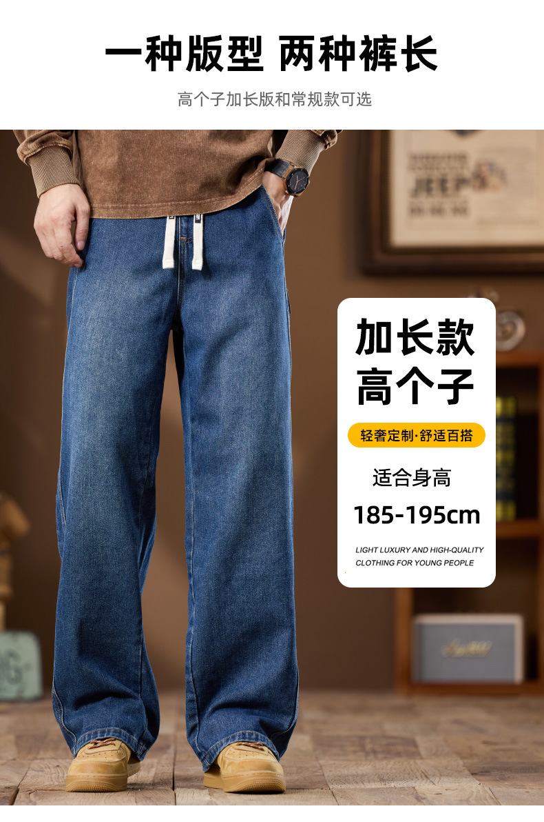 K935|大码男装秋冬新品高个子加长牛仔裤男宽松百搭阔腿直筒长裤