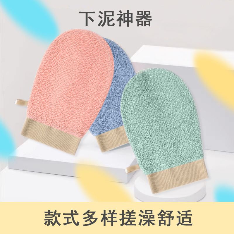 お風呂の手袋をこすります。お風呂のタオルをこすります。強力に泥をこすります。