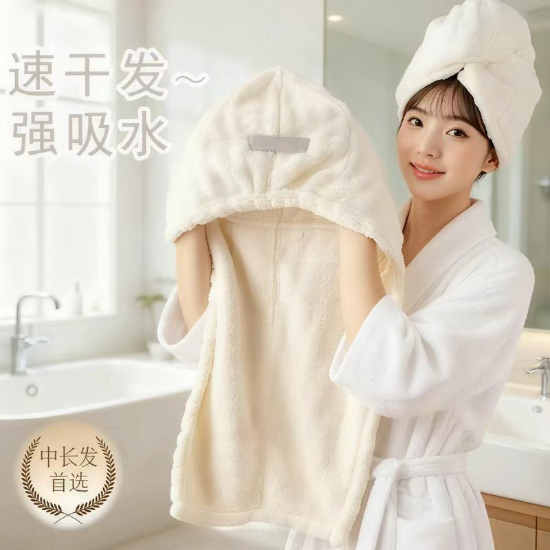 2025年新款一片式加大加厚法式泡泡绒干发帽超强吸水速干毛巾抗菌