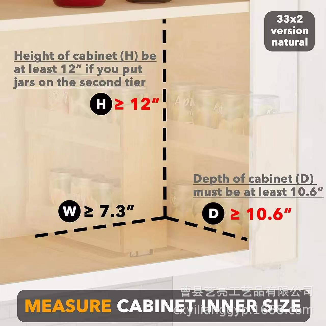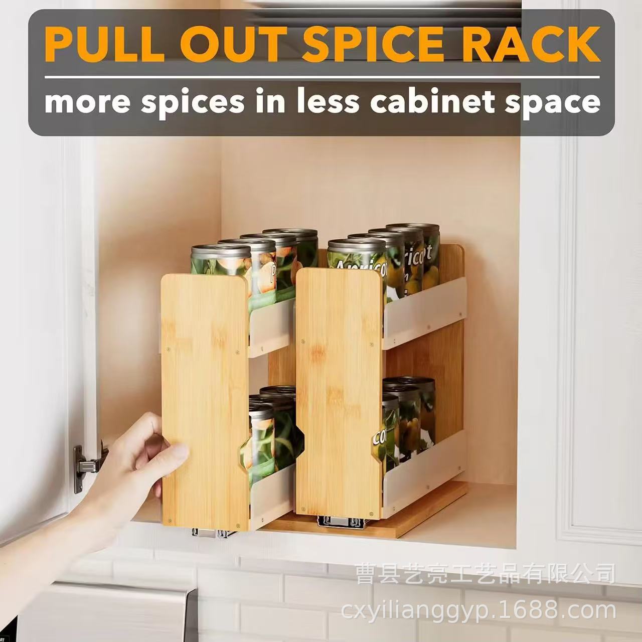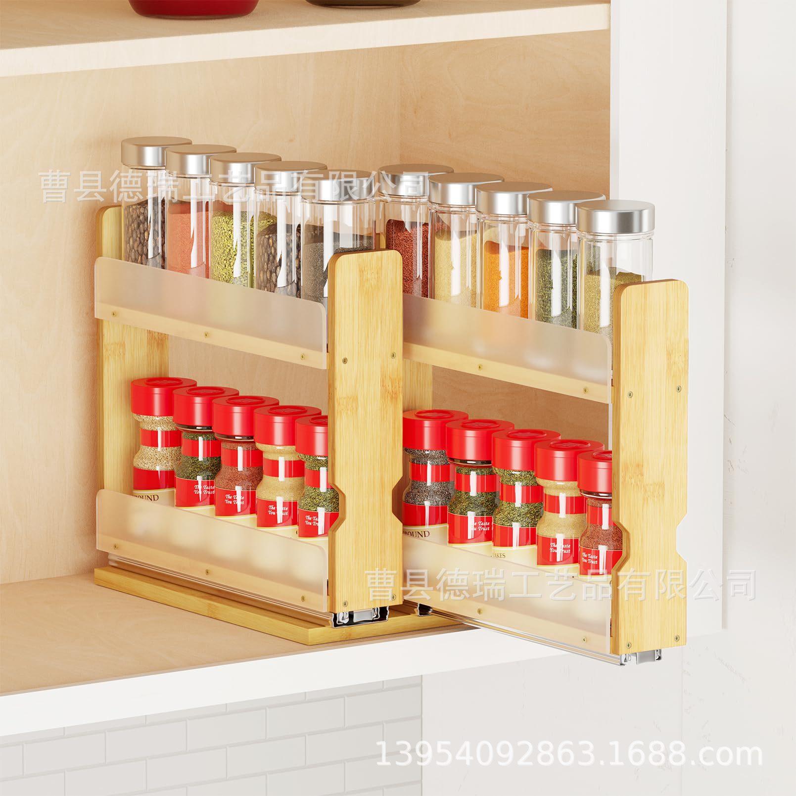 亚马逊竹制厨房抽拉式橱柜香料调味架多层可推拉调料收纳整理架