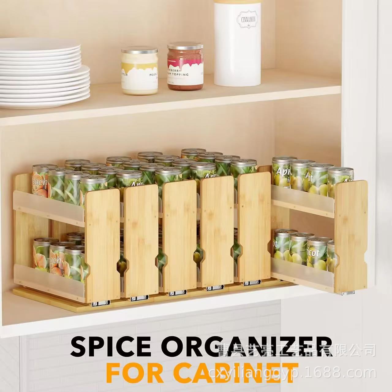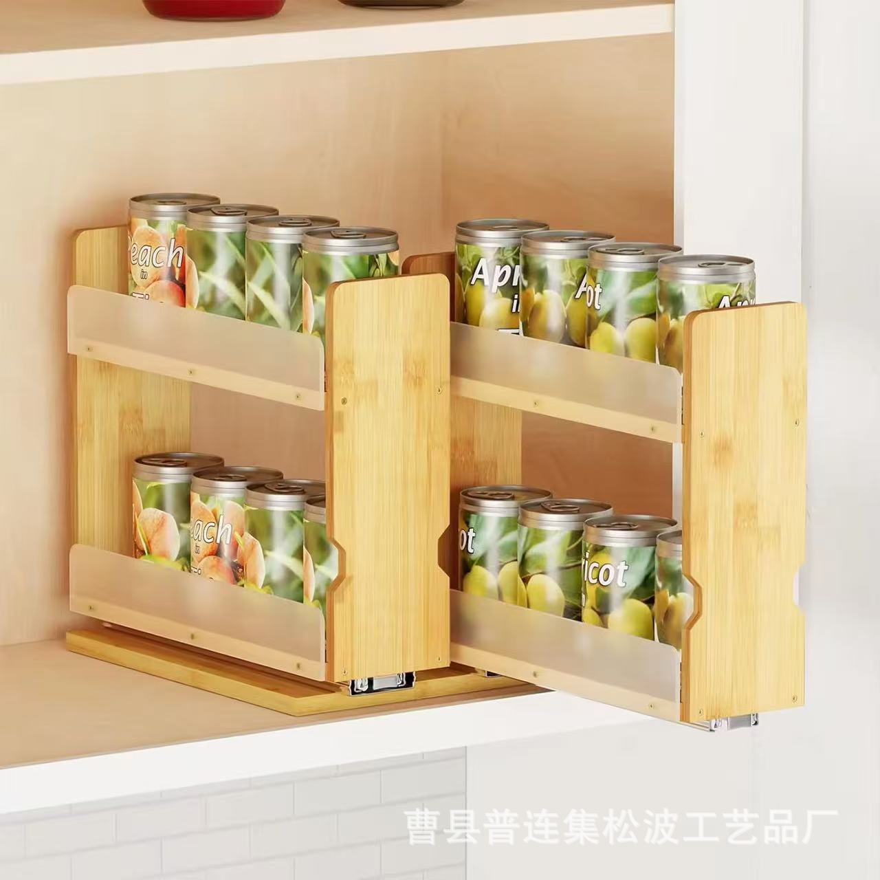 现货厂家制作置物架竹制调味架多层可推拉厨房调味罐收纳整理架