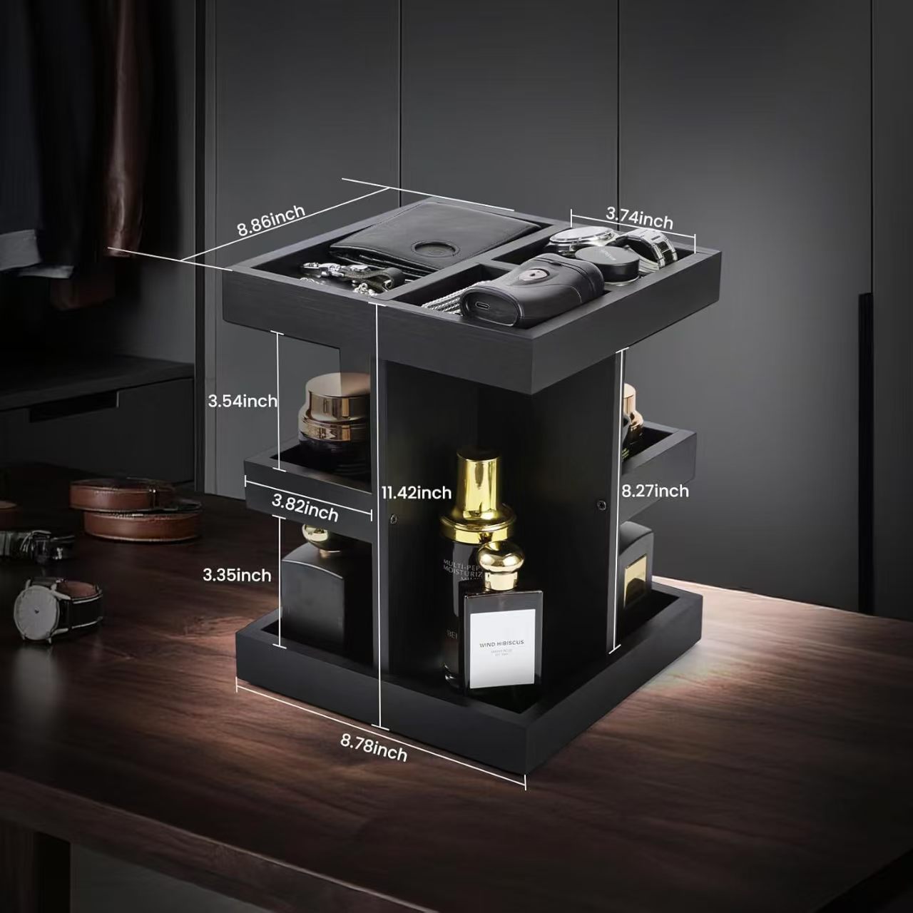 跨境木质化妆品整理架可旋转收纳架浴室桌面香水储物架黑色饰品架