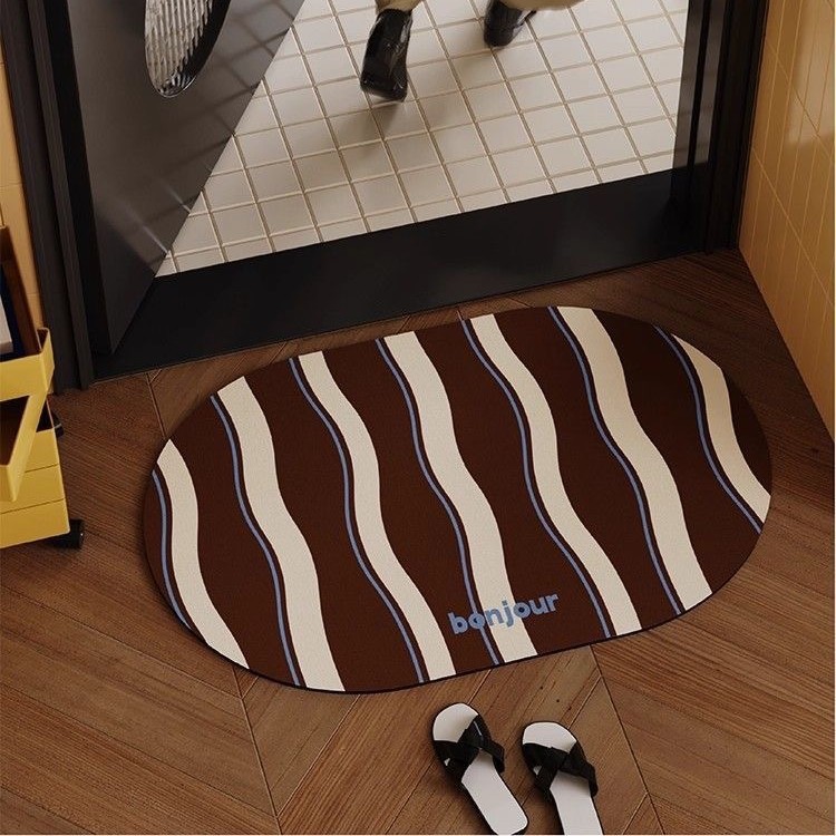 复古巧克力色浴室地垫吸水速干卫生间门口防滑脚垫软硅藻泥地毯垫