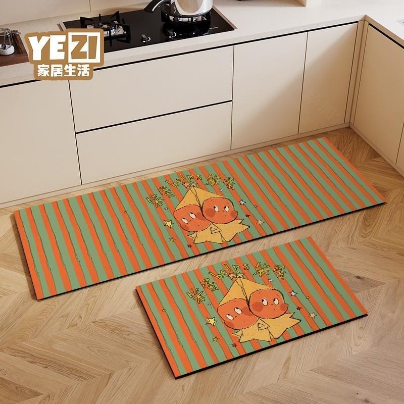 小清新草地厨房地垫家用耐脏易打理脚垫两件套吸水耐脏硅藻泥地垫