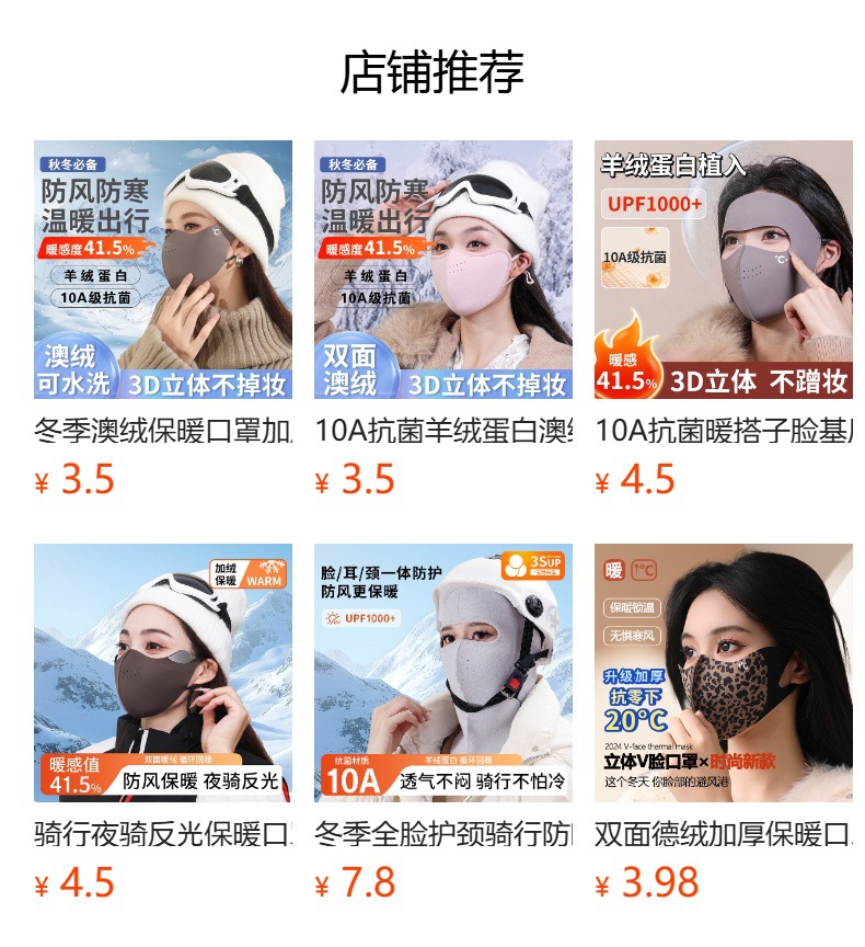 10A抗菌羊绒蛋白澳绒保暖口罩女冬高颜值防风骑行UPF1000防晒面罩