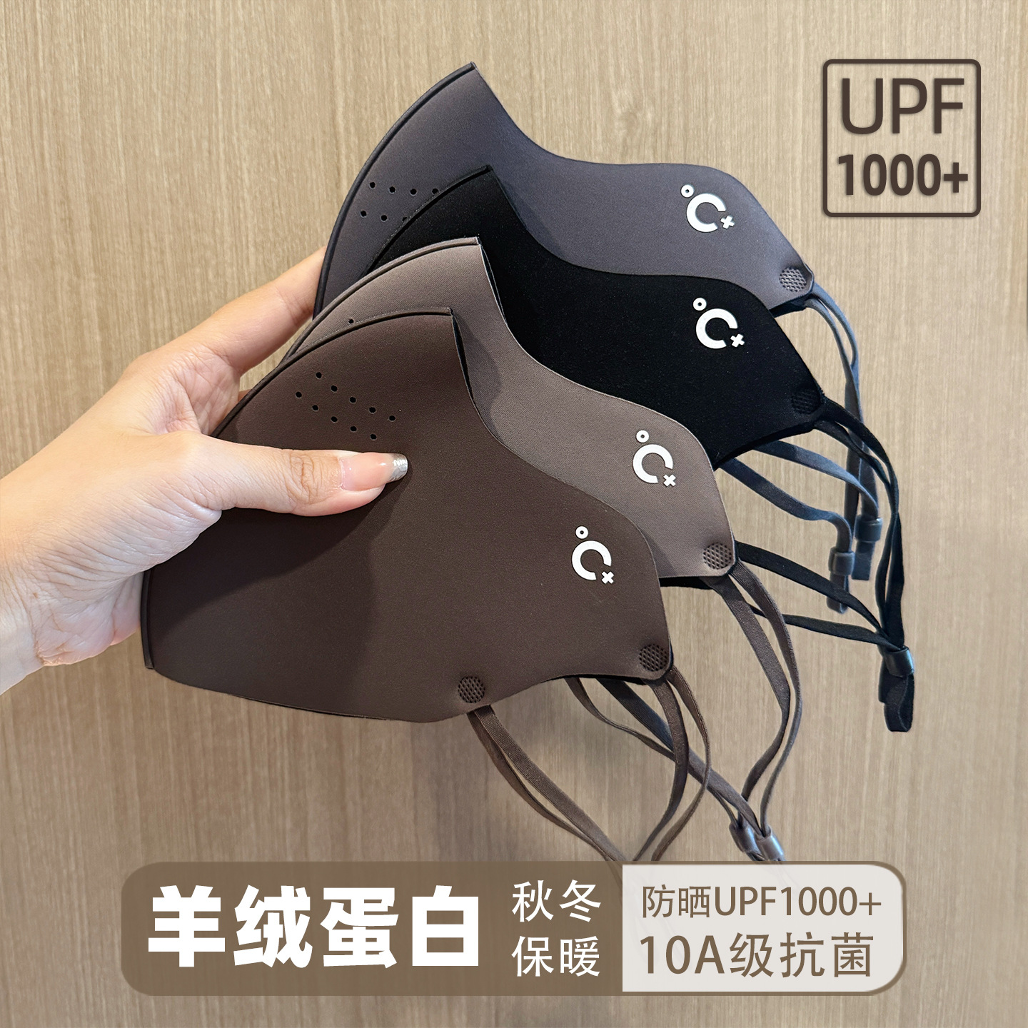 新款秋冬简约百搭羊绒蛋白暖绒加绒保暖口罩防晒透气10A级抑菌