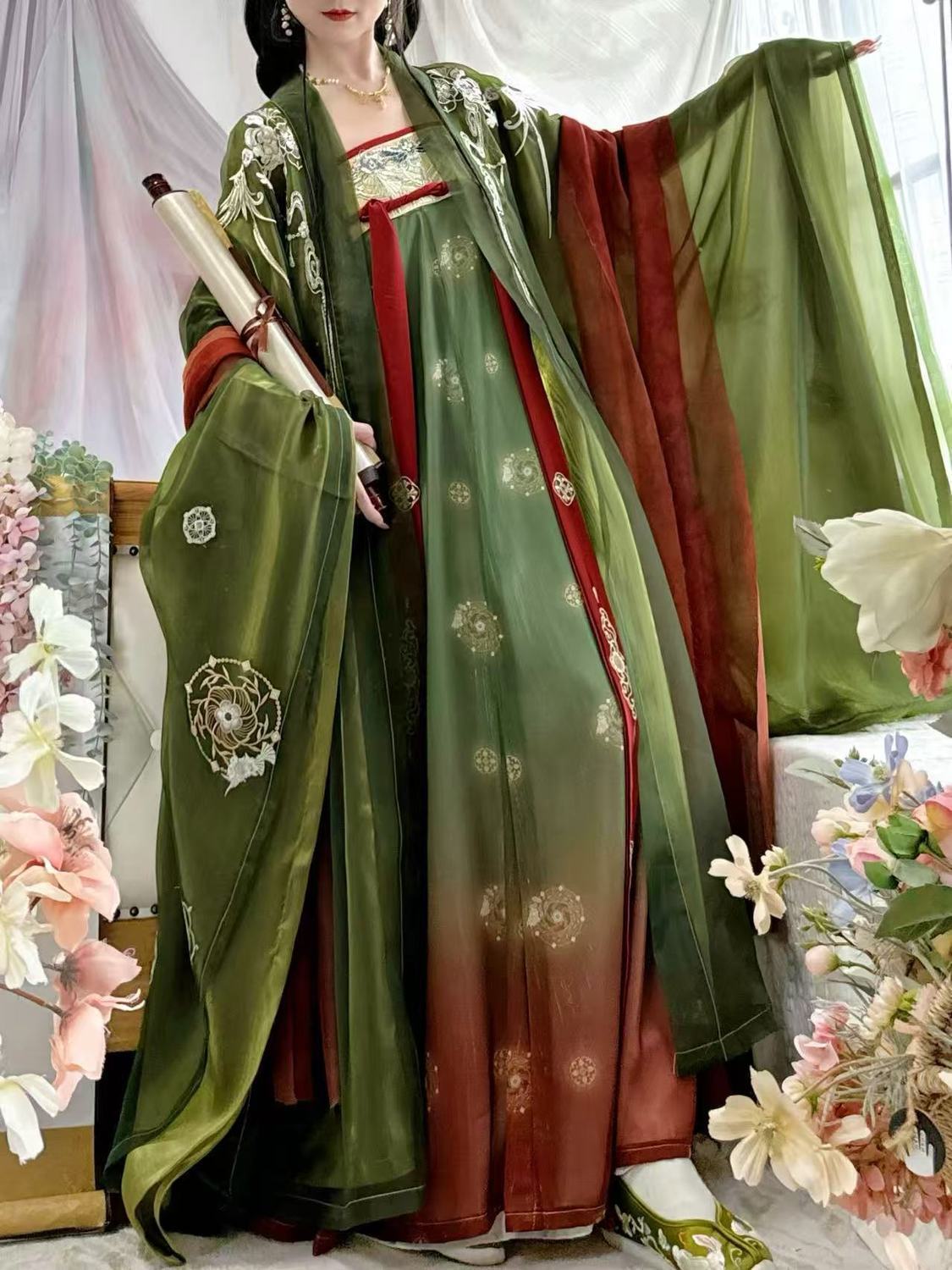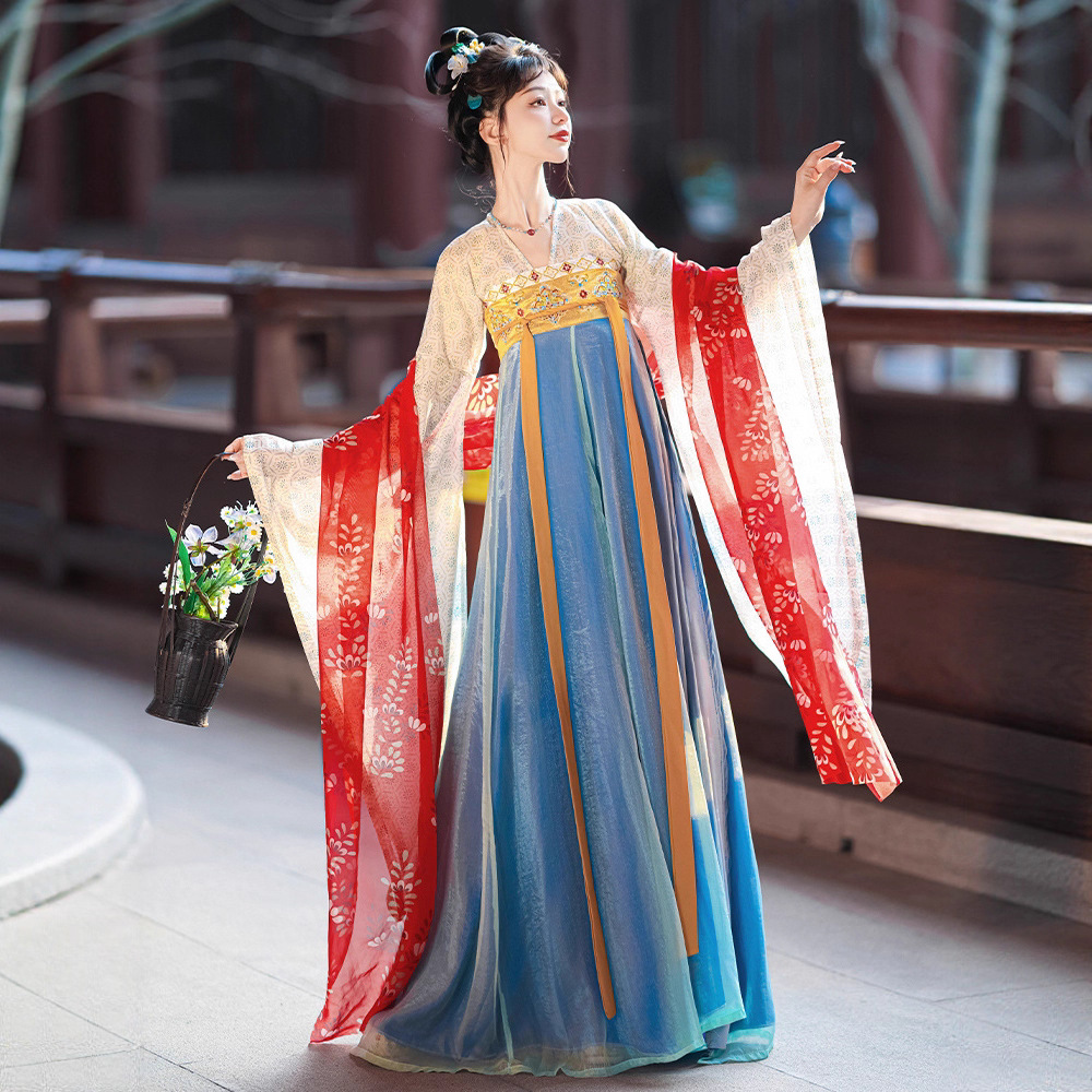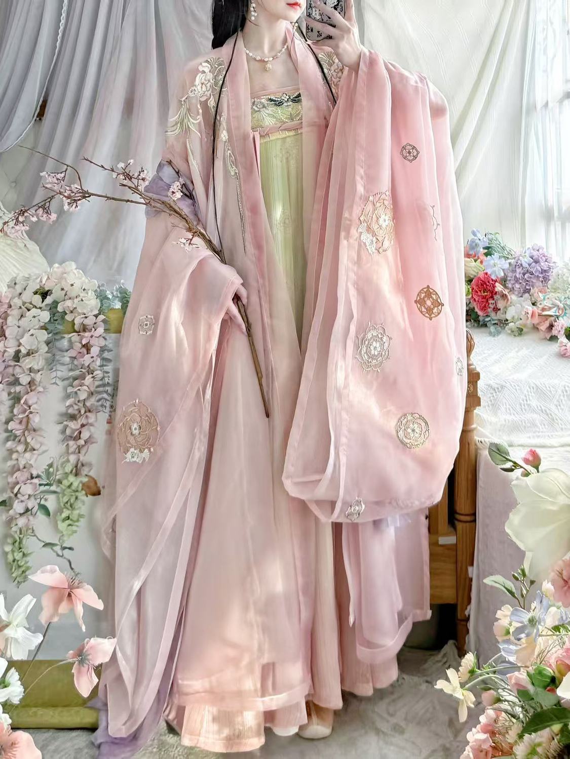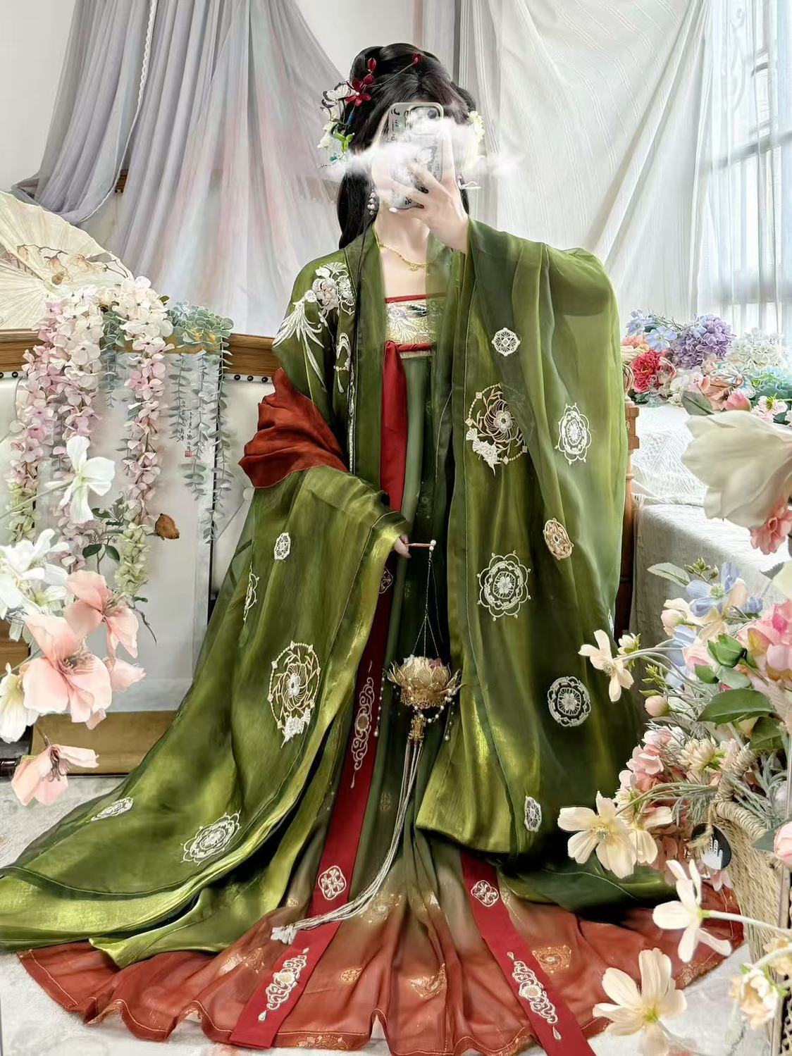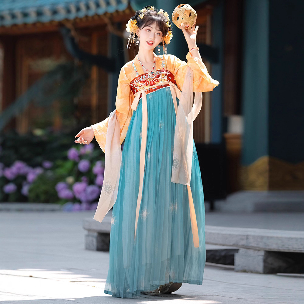 オリジナル漢服女2025新作唐製刺繍復元胸大袖シャツ超仙破れスカート国風春夏古着