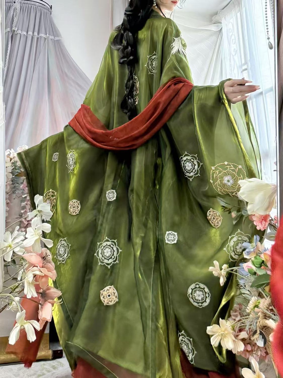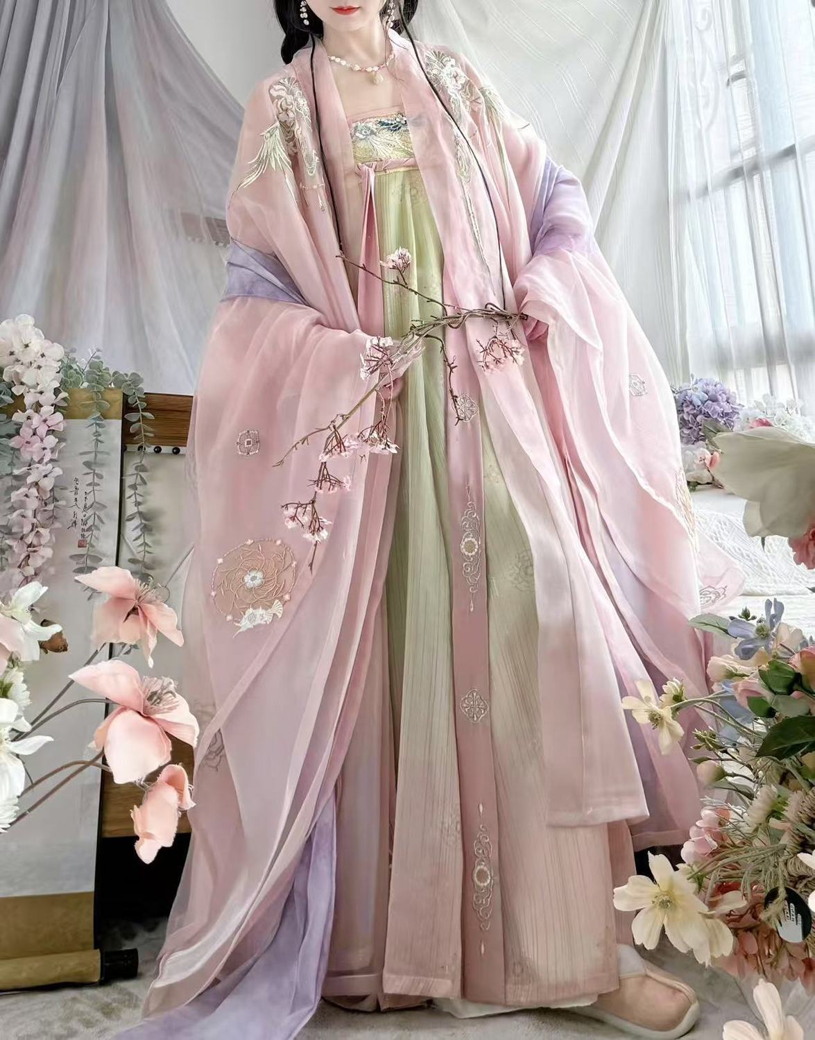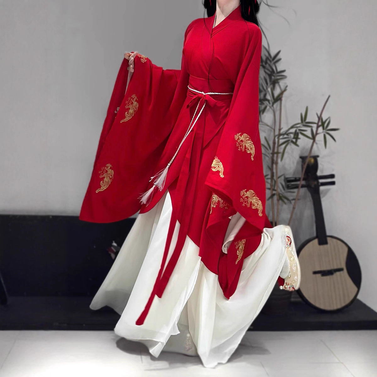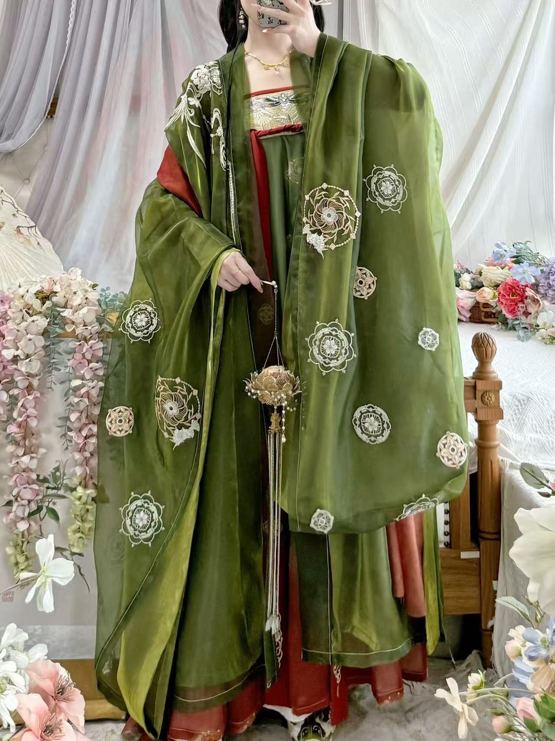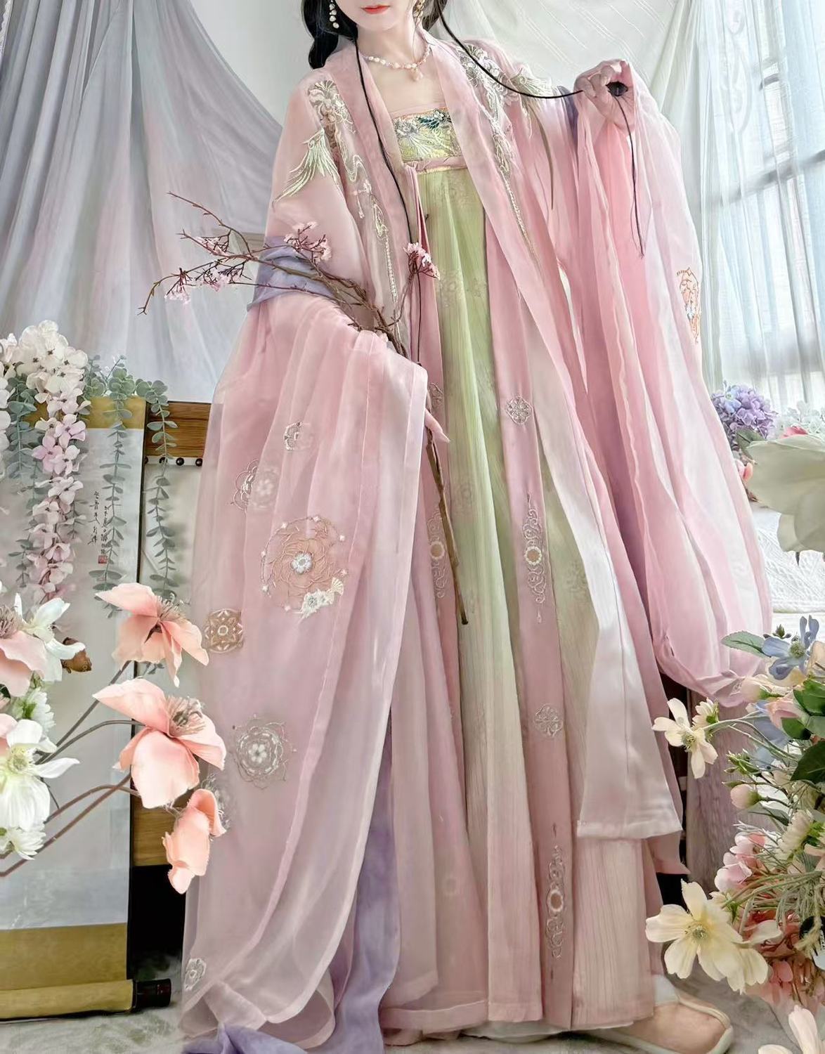 オリジナル漢服女2025新作唐製刺繍復元胸大袖シャツ超仙破れスカート国風春夏古着