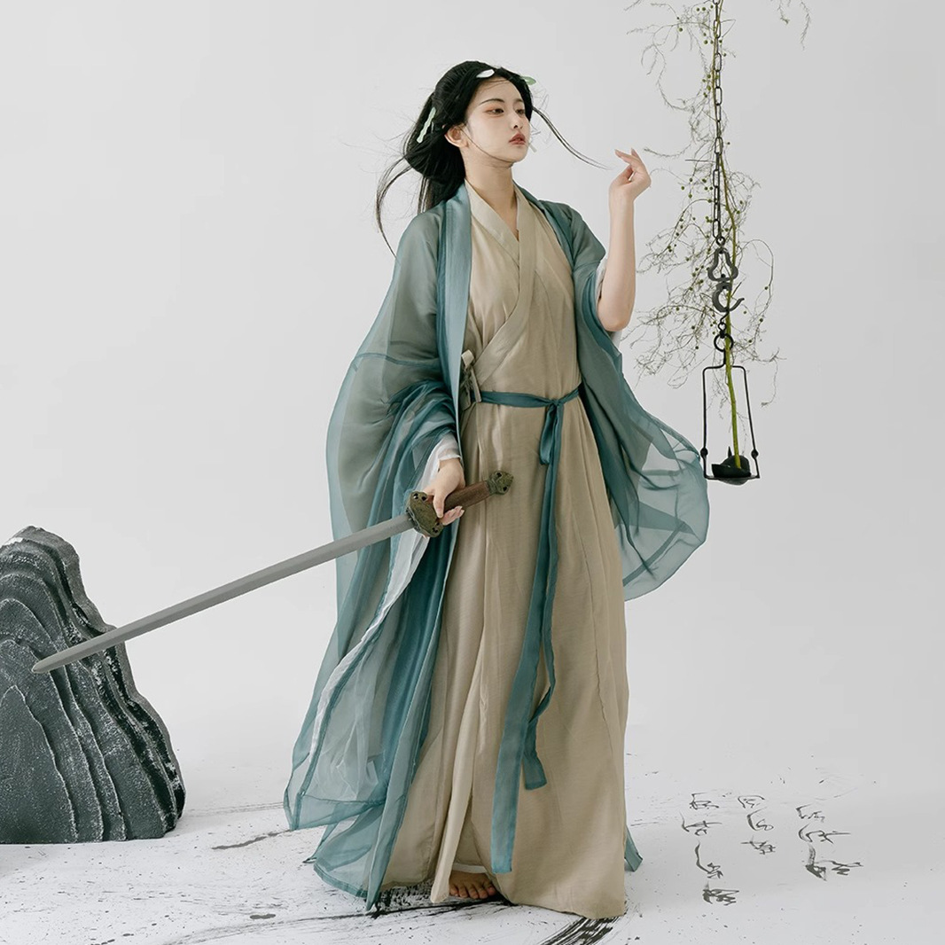 魏晋風オリジナル2025年新作漢服女性用交襟直裾大袖シャツ日常着清涼仙気春夏セット