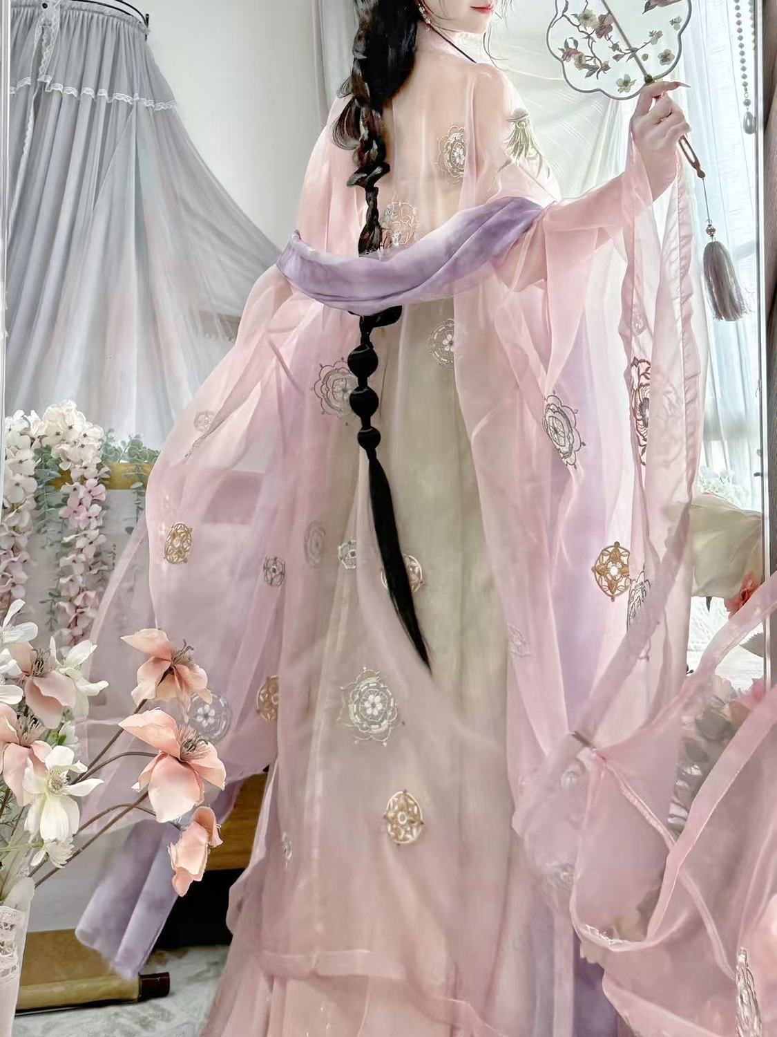 オリジナルの漢服の女性のホーテのスカートの唐製の胸の1枚のメンズのスカートの刺繍の大きい袖のシャツの中国風の春の夏のスーツ