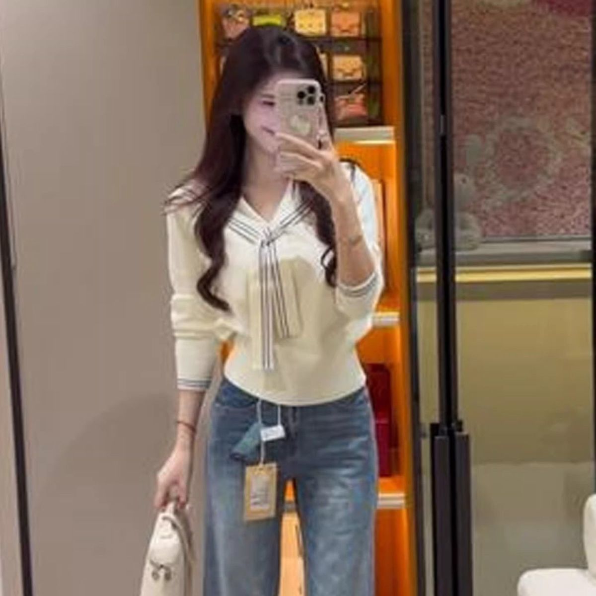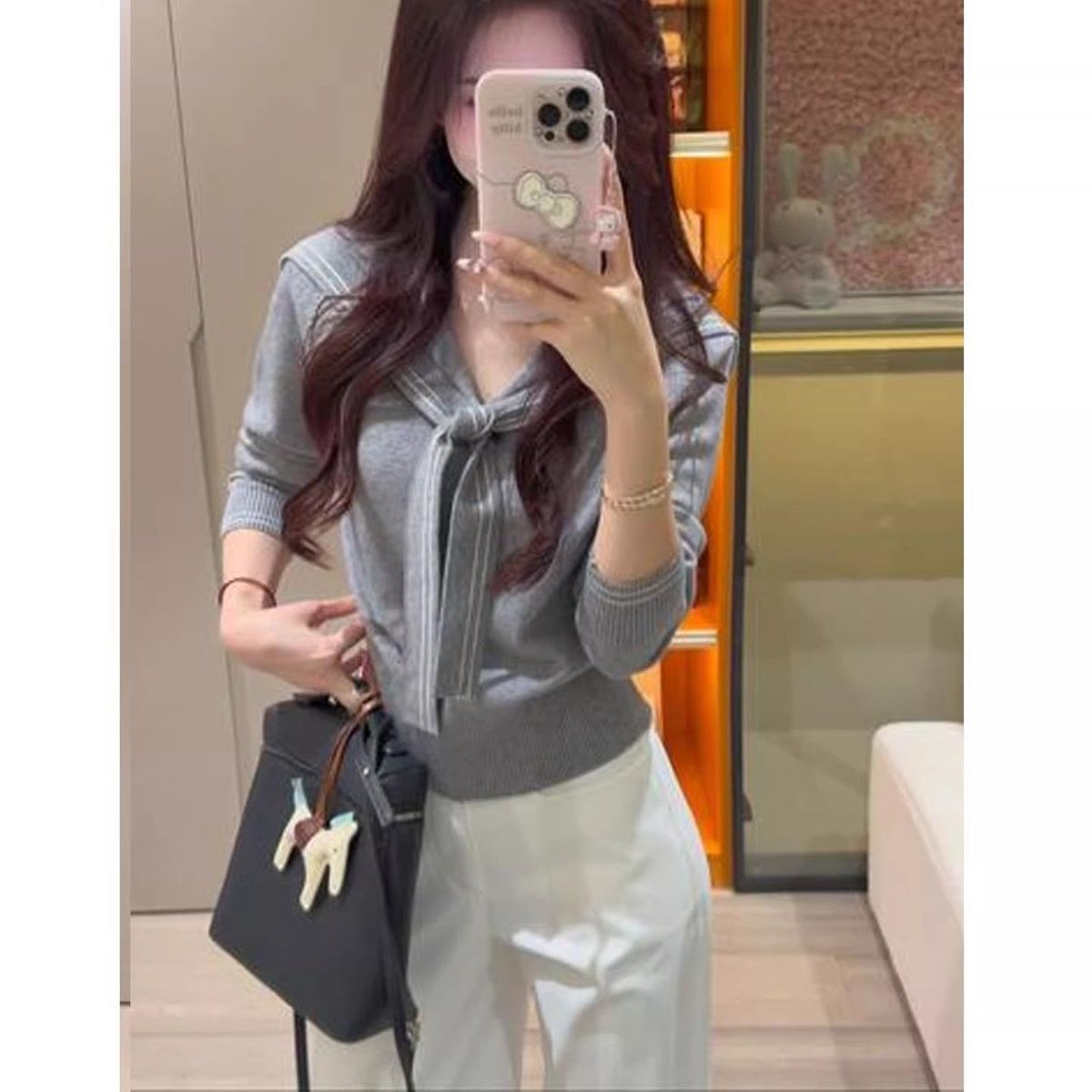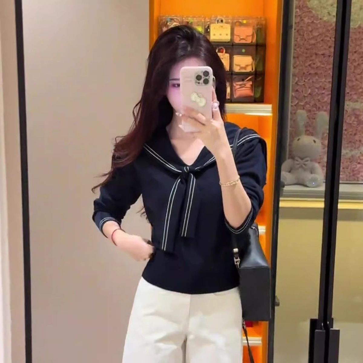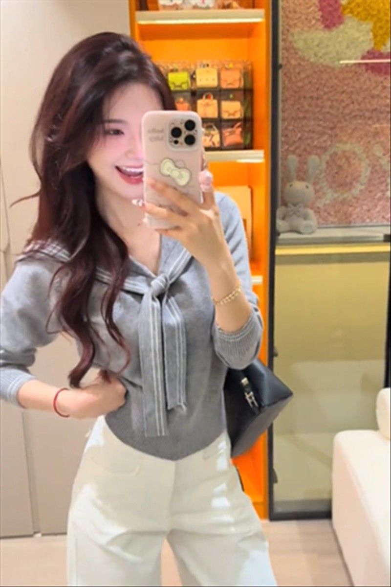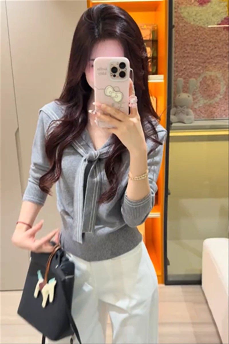 2025早秋新款减龄气质海军领针织衫甜美韩系收腰修身针织长袖上衣