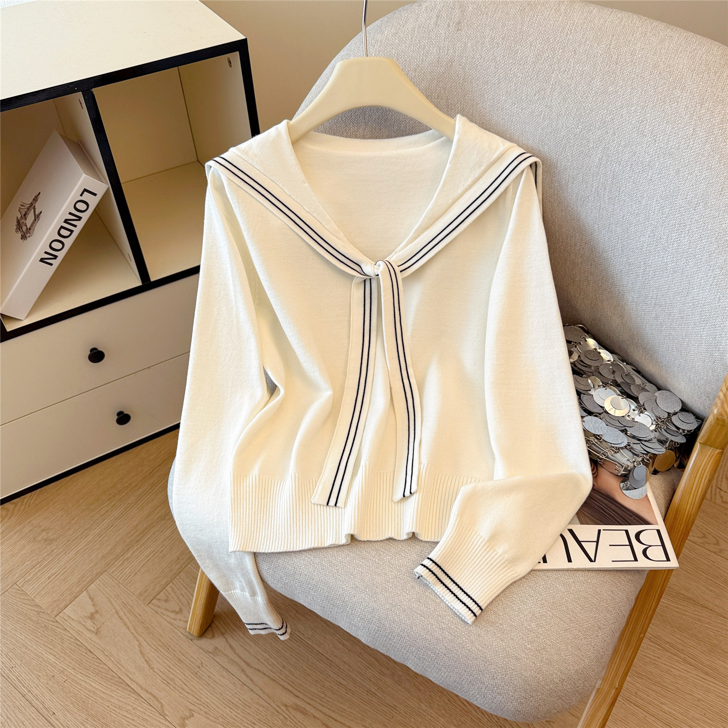 秋冬海军领披肩长袖女装针织衫女新款高级感内搭显瘦毛衣上衣