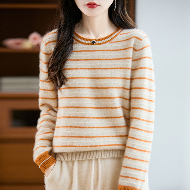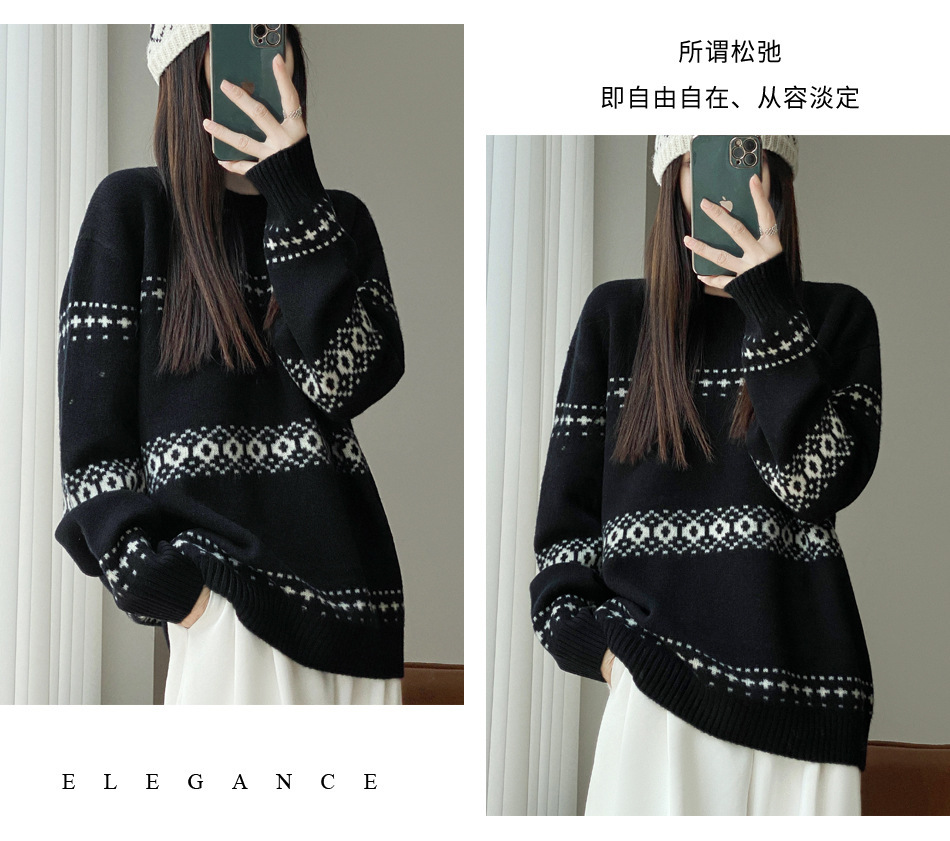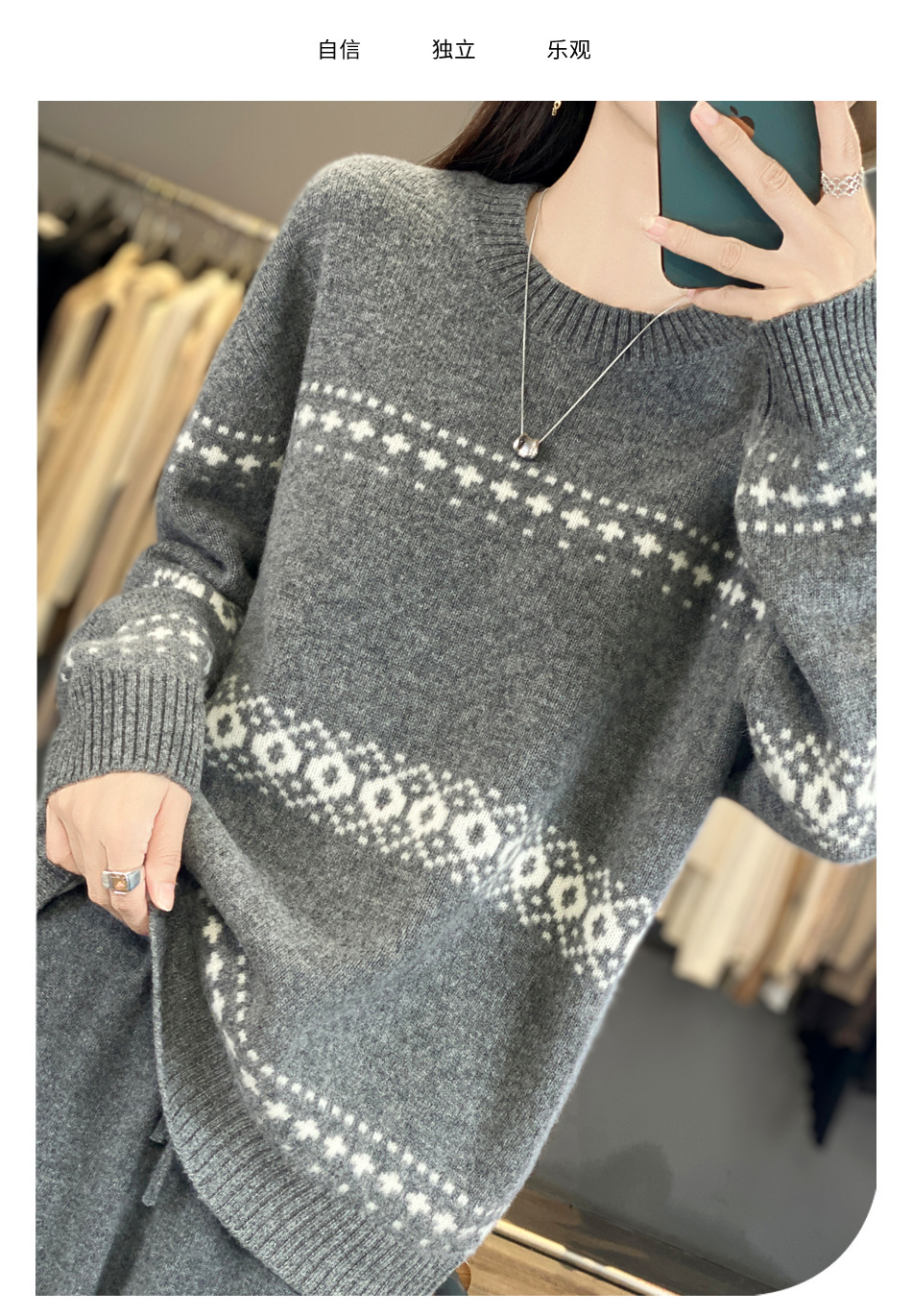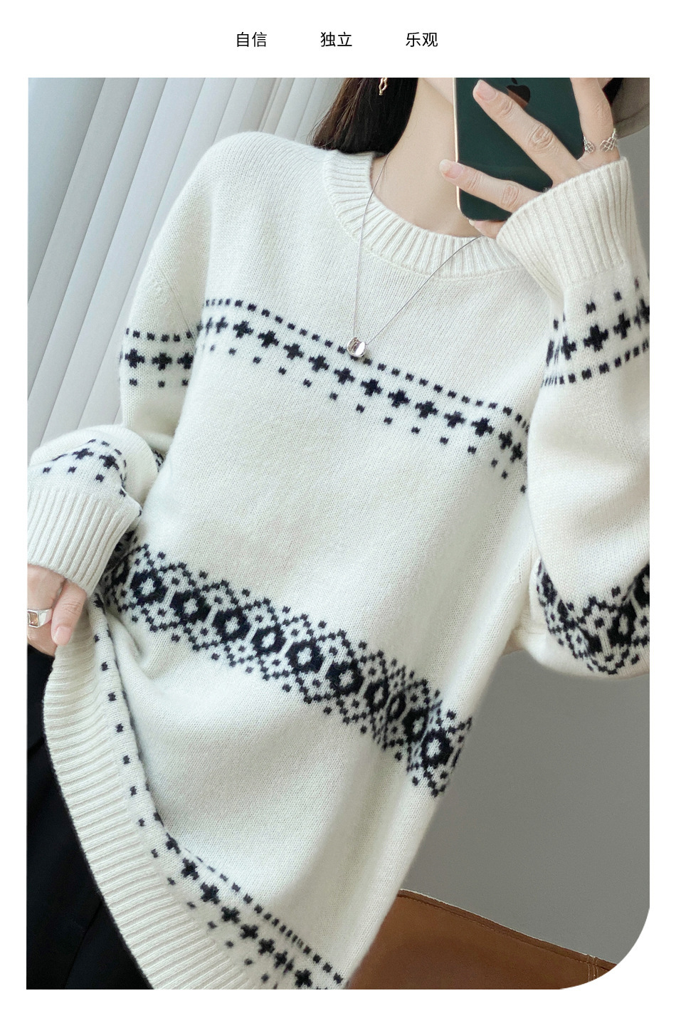 100%纯羊毛2025秋冬新款女式宽松圆领复古加厚套头打底针织衫毛衣