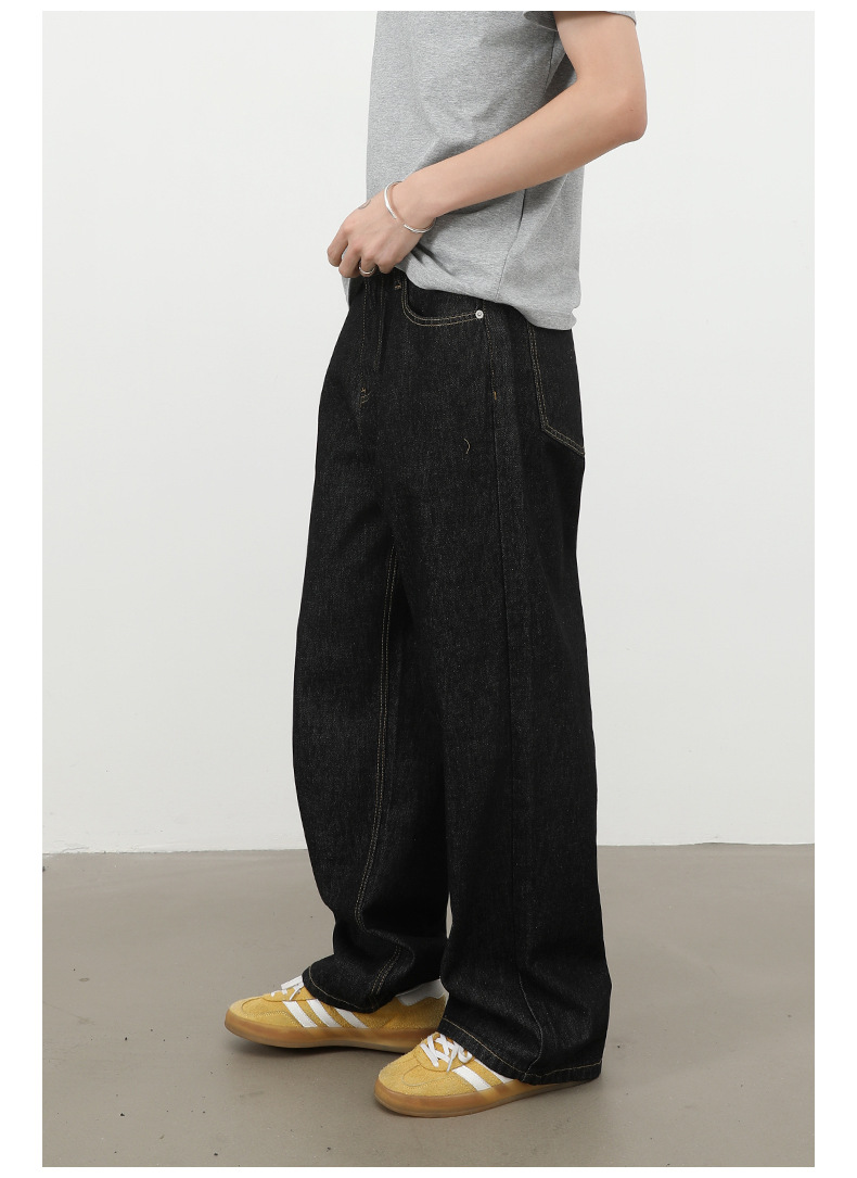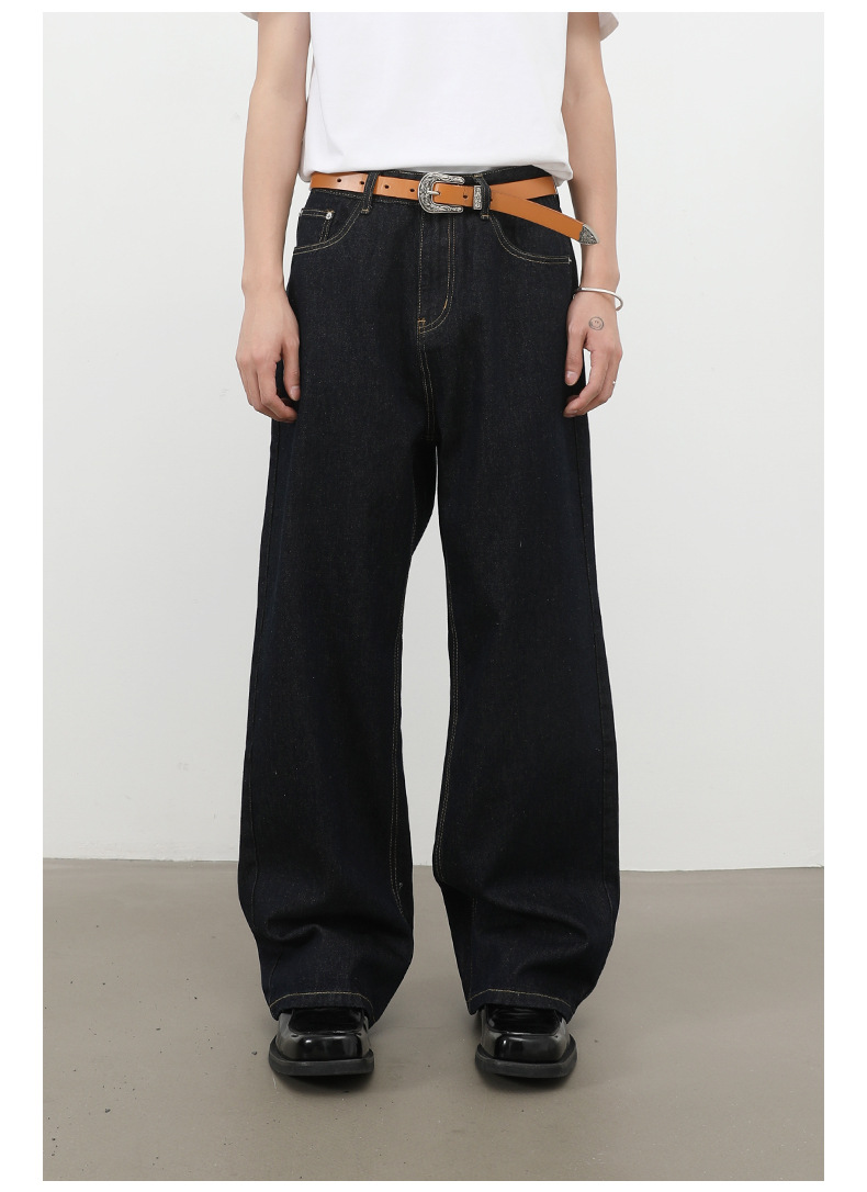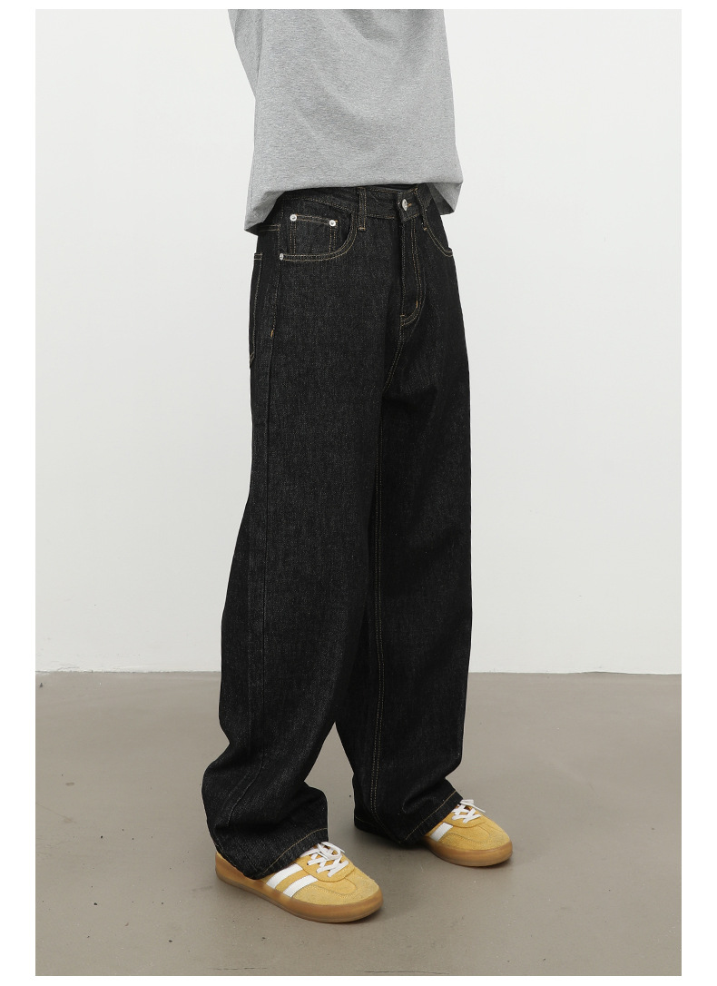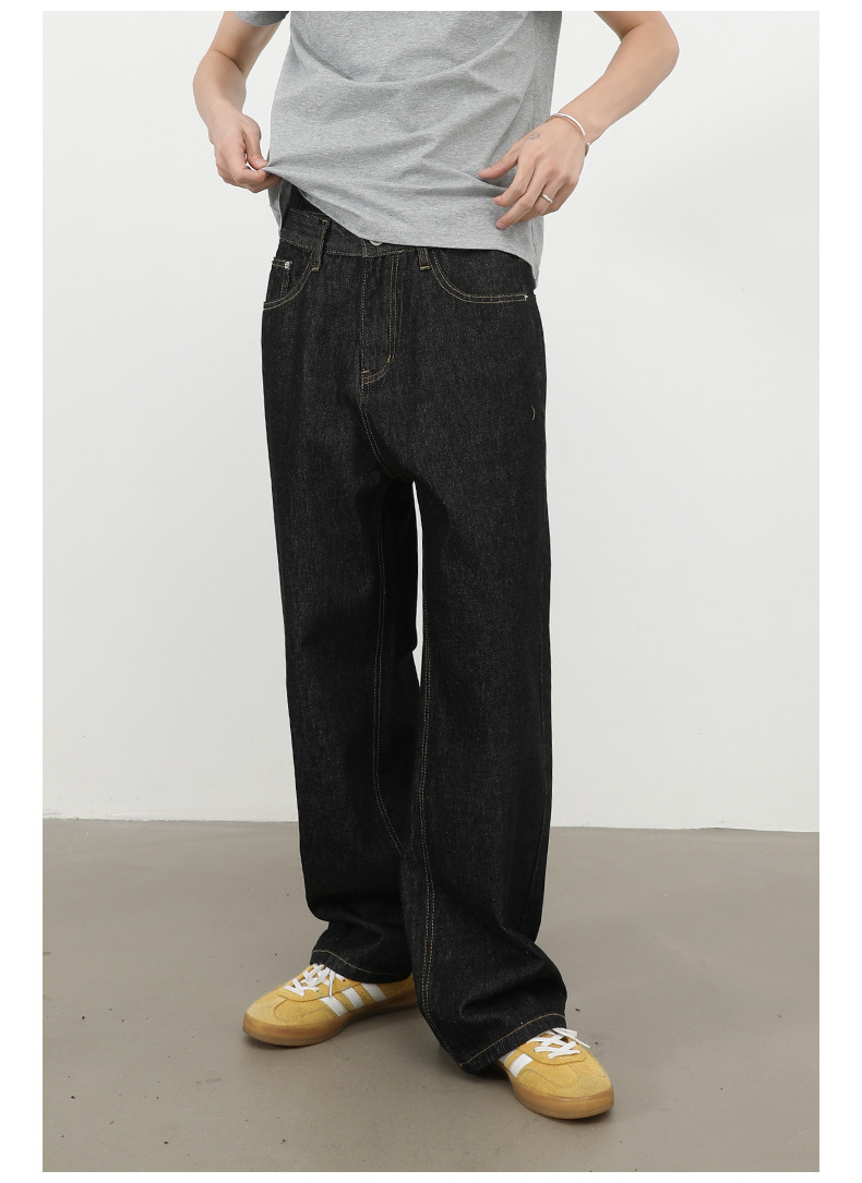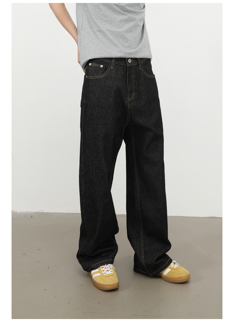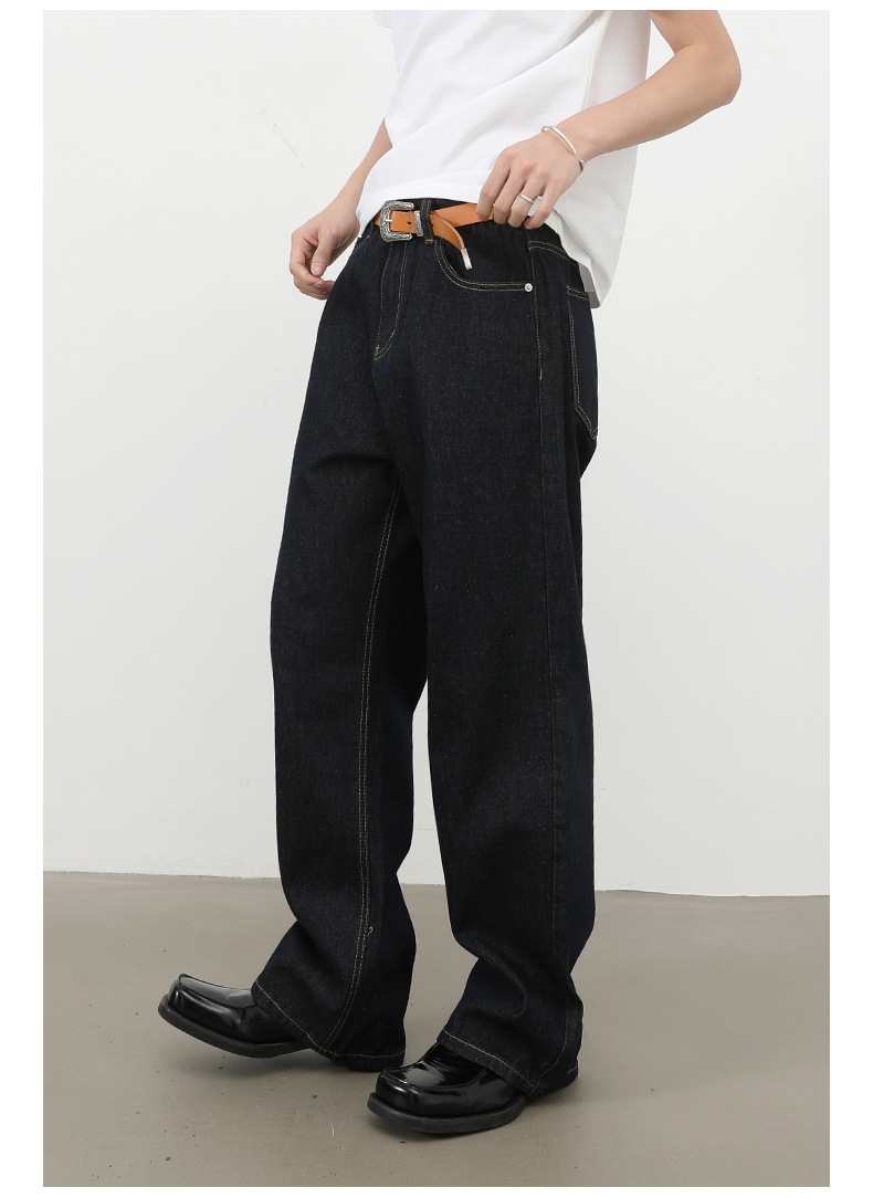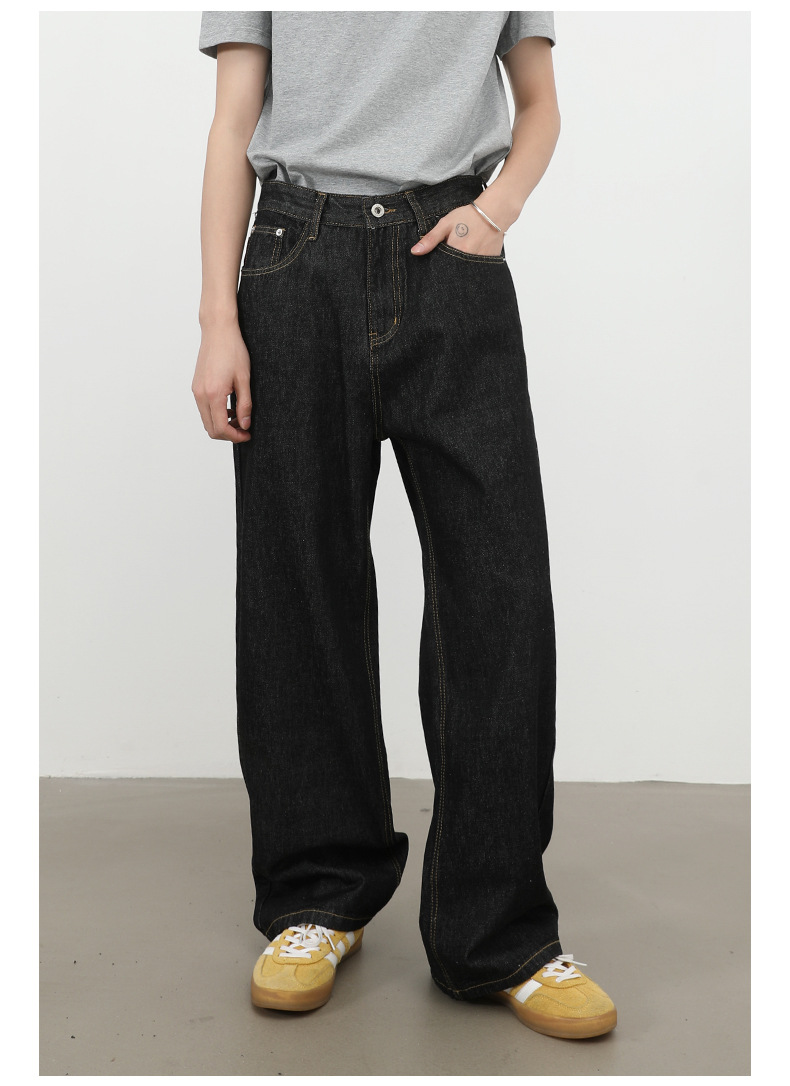 nirben牛仔|复古黑蓝丹宁原色阔腿牛仔裤男美式百搭直筒宽松长裤