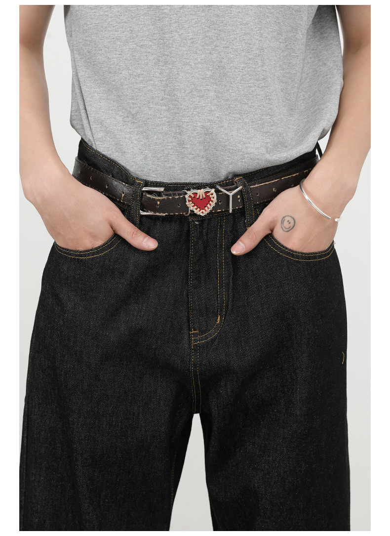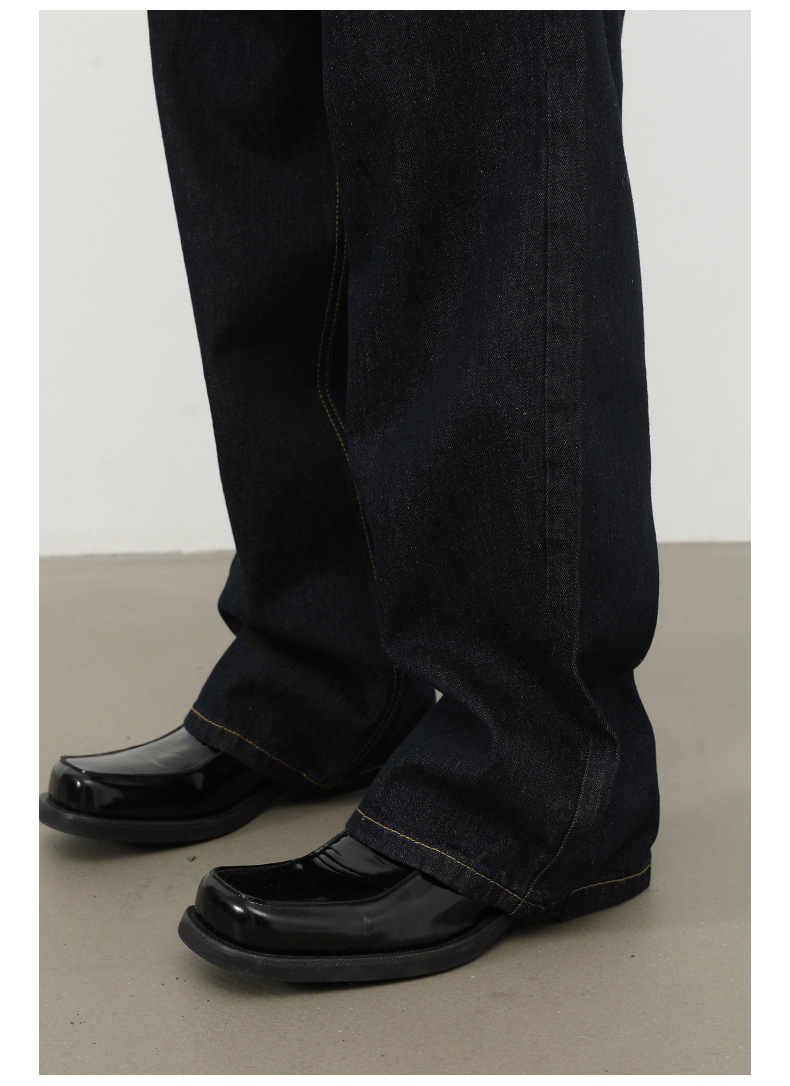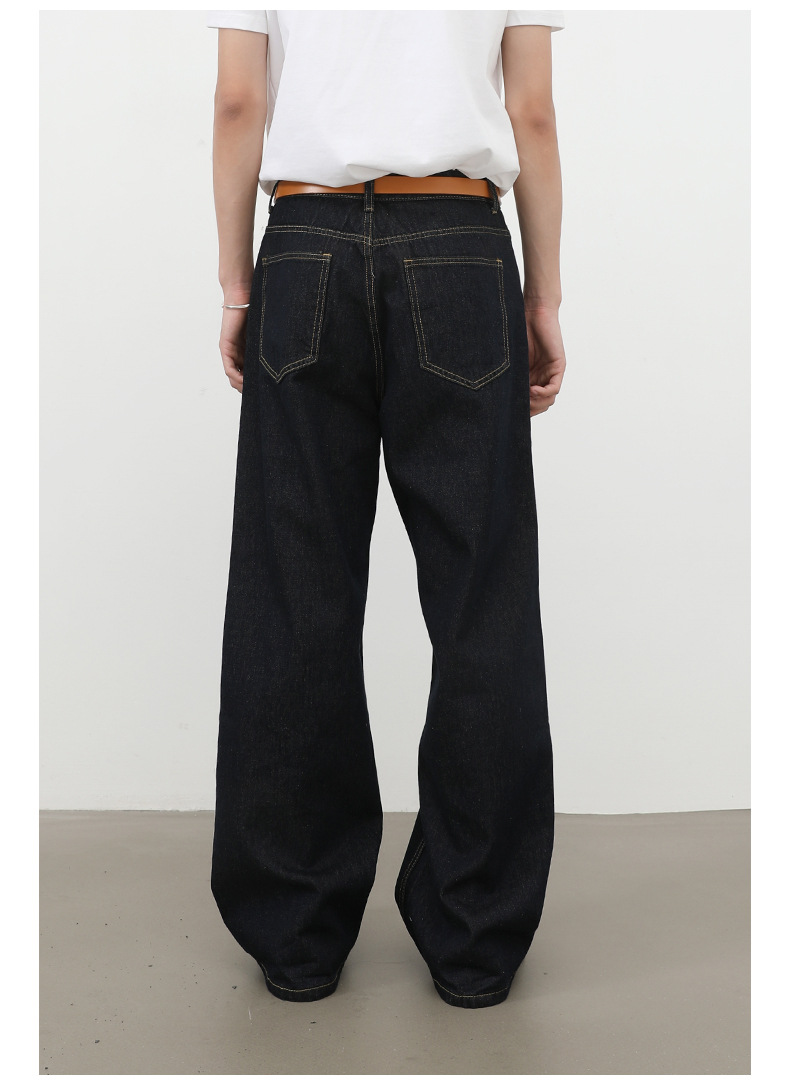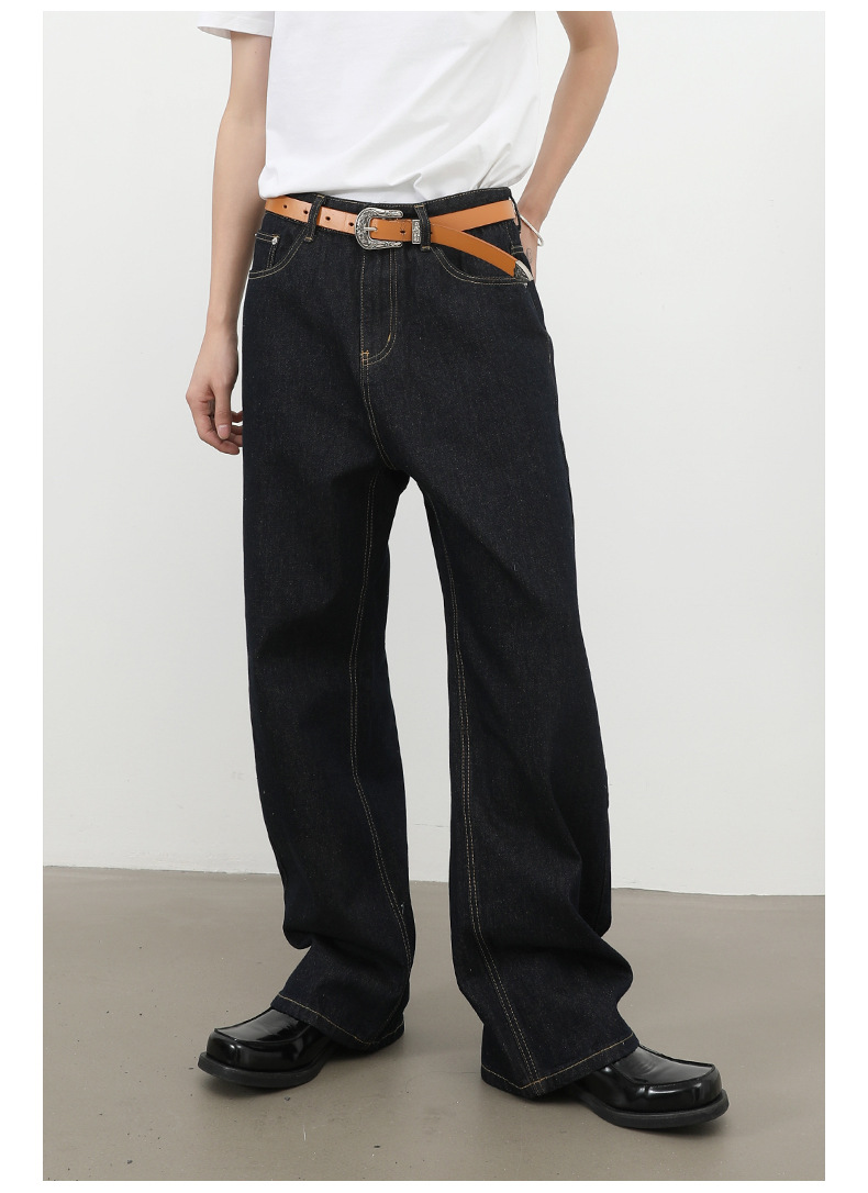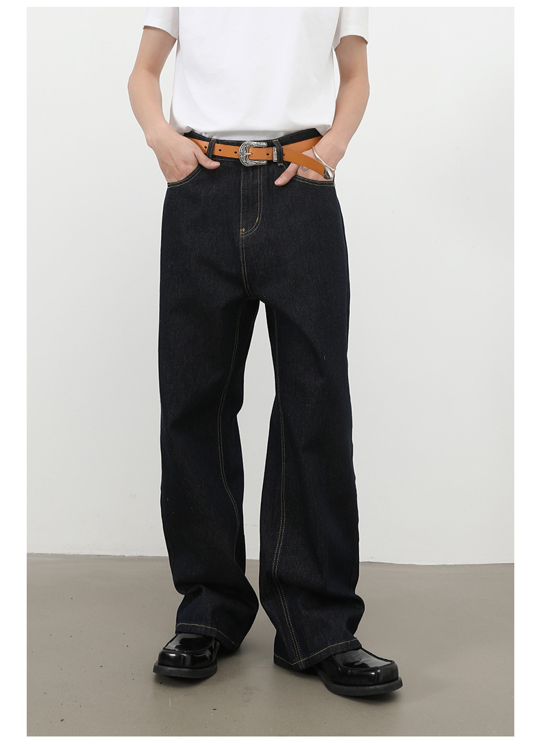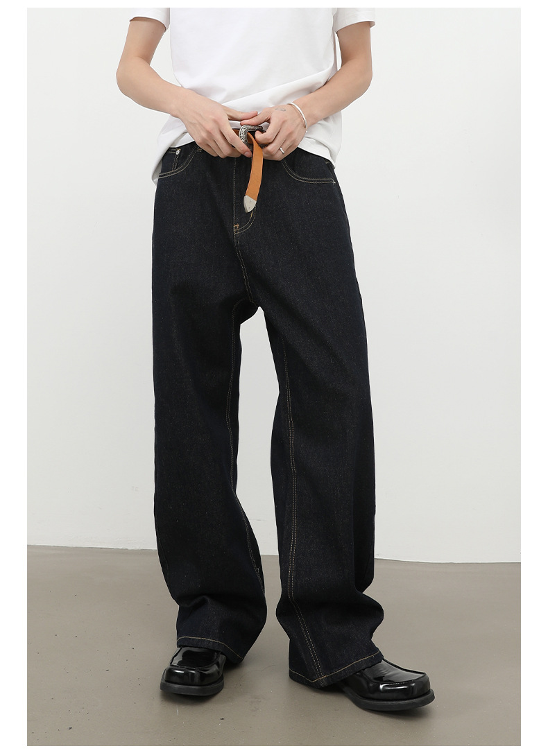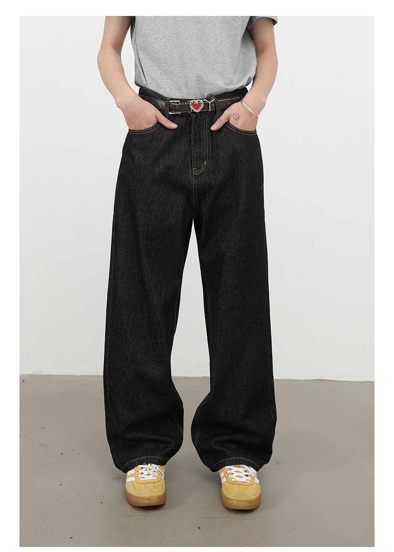 nirben牛仔|复古黑蓝丹宁原色阔腿牛仔裤男美式百搭直筒宽松长裤