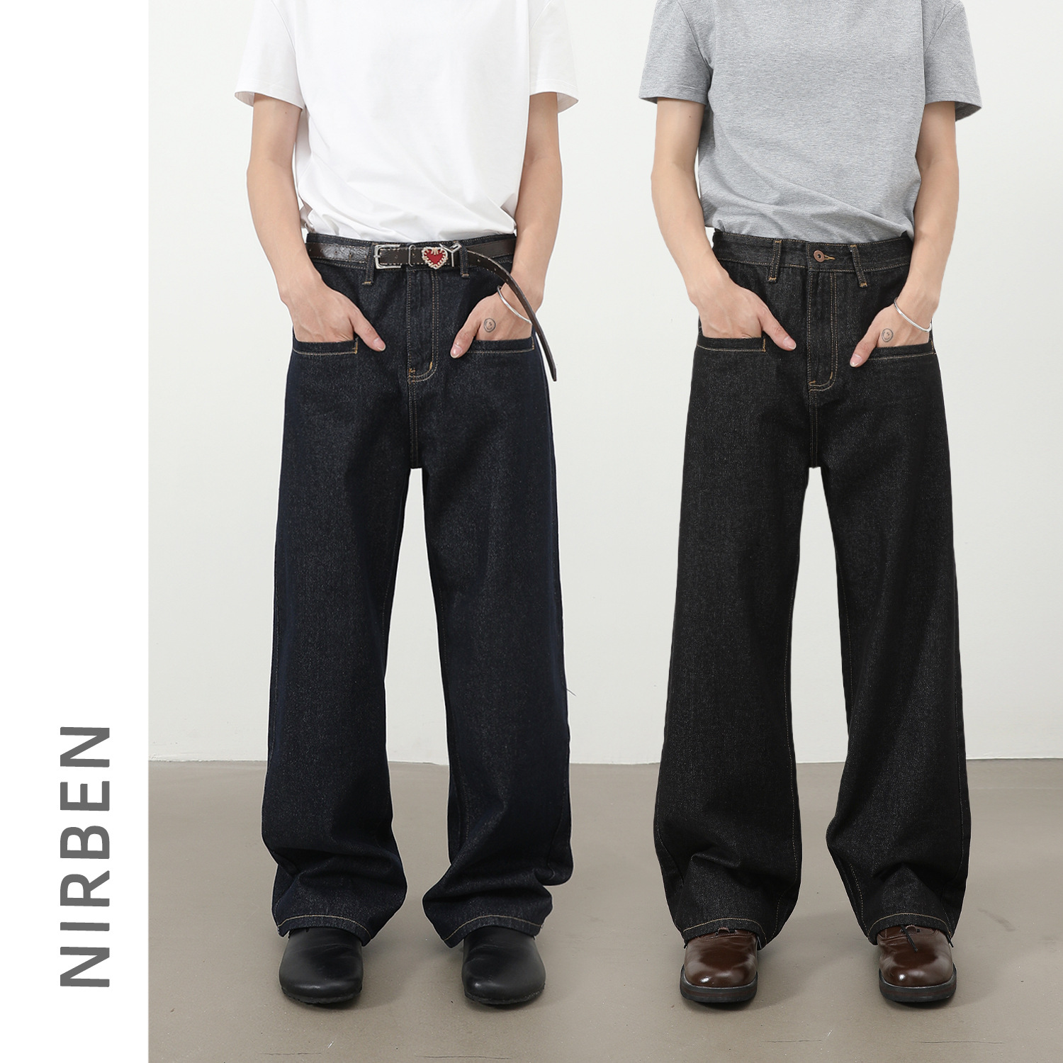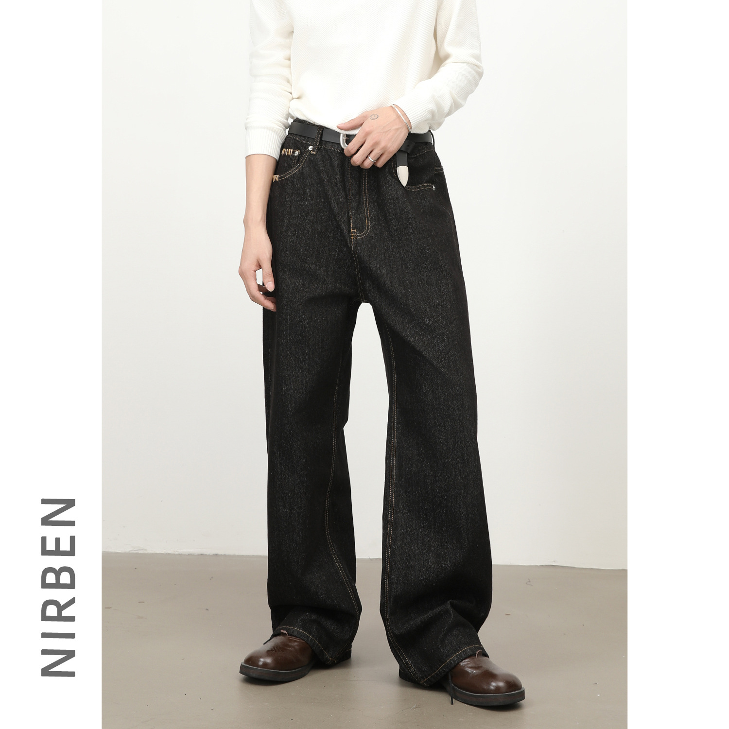 nirben牛仔| 原牛不掉色牛仔裤男插袋设计直筒韩版宽松阔腿拖地裤