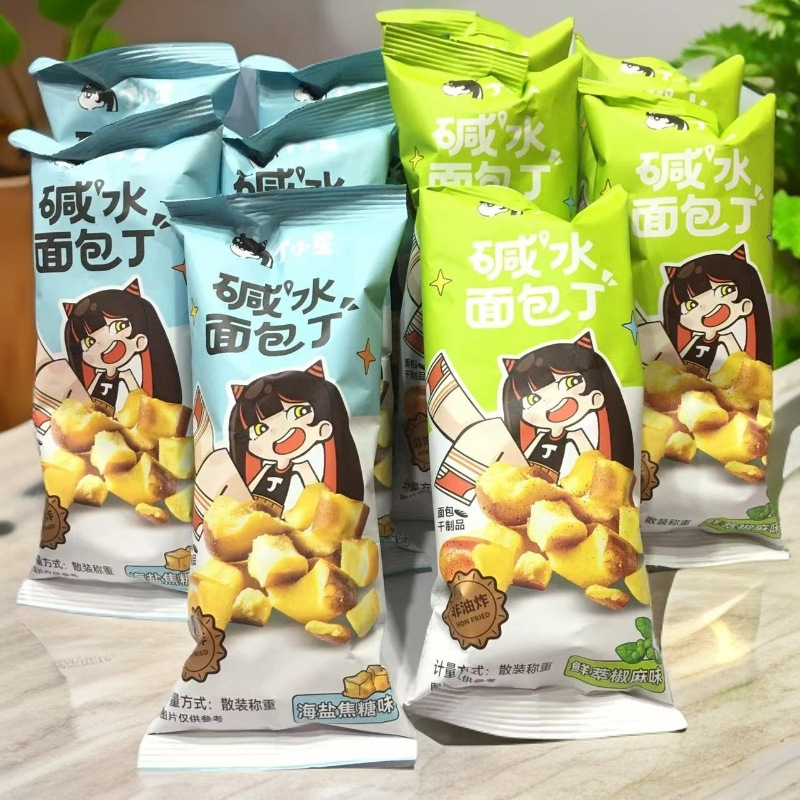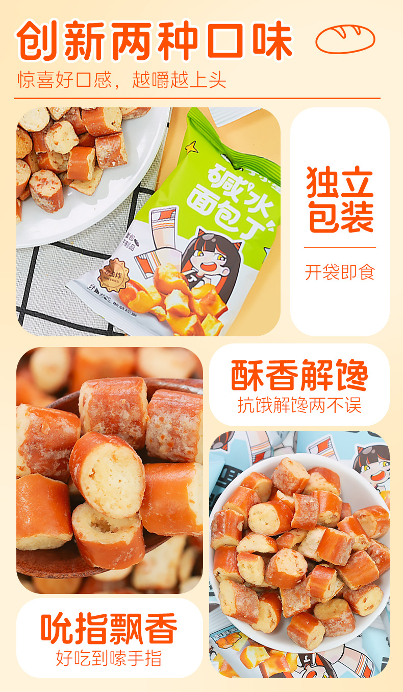 优乐麦碱水面包丁海盐焦糖面包碎袋装休闲追剧解馋零食品小吃批发