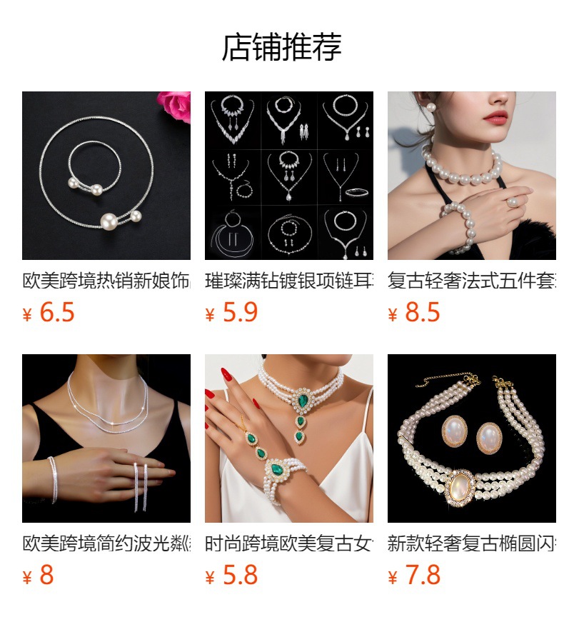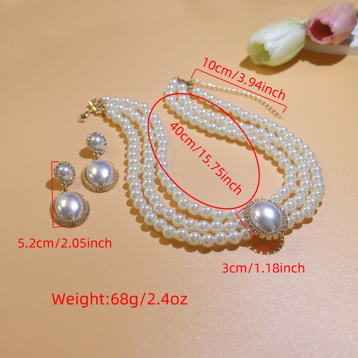 跨境复古轻奢合金珍珠首饰套装宴会宫廷风满钻多层项链手链耳环