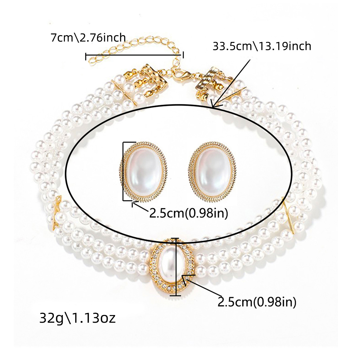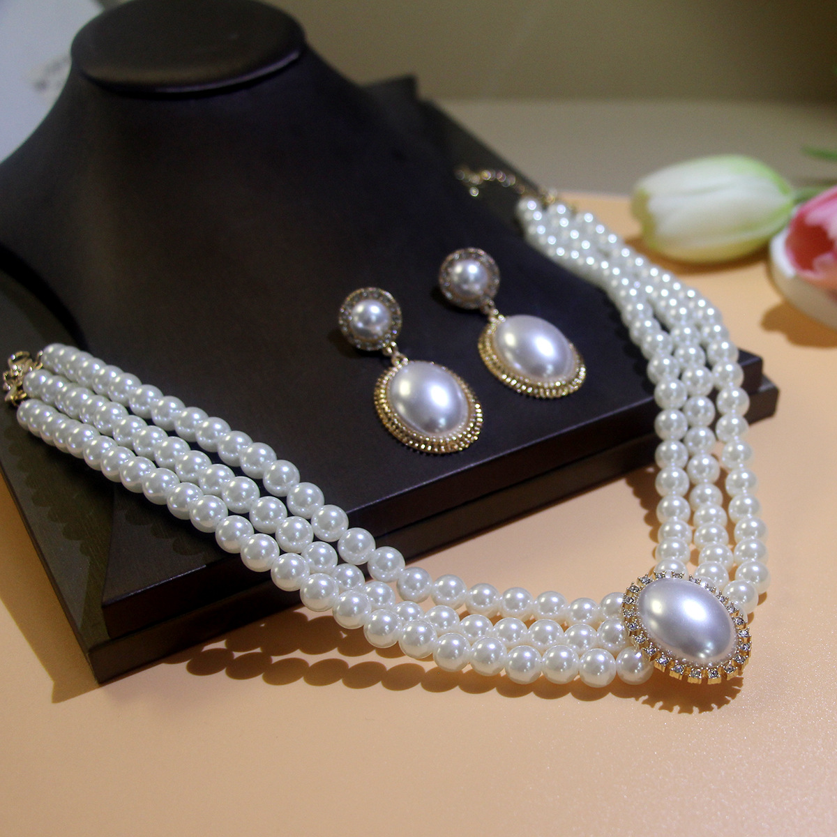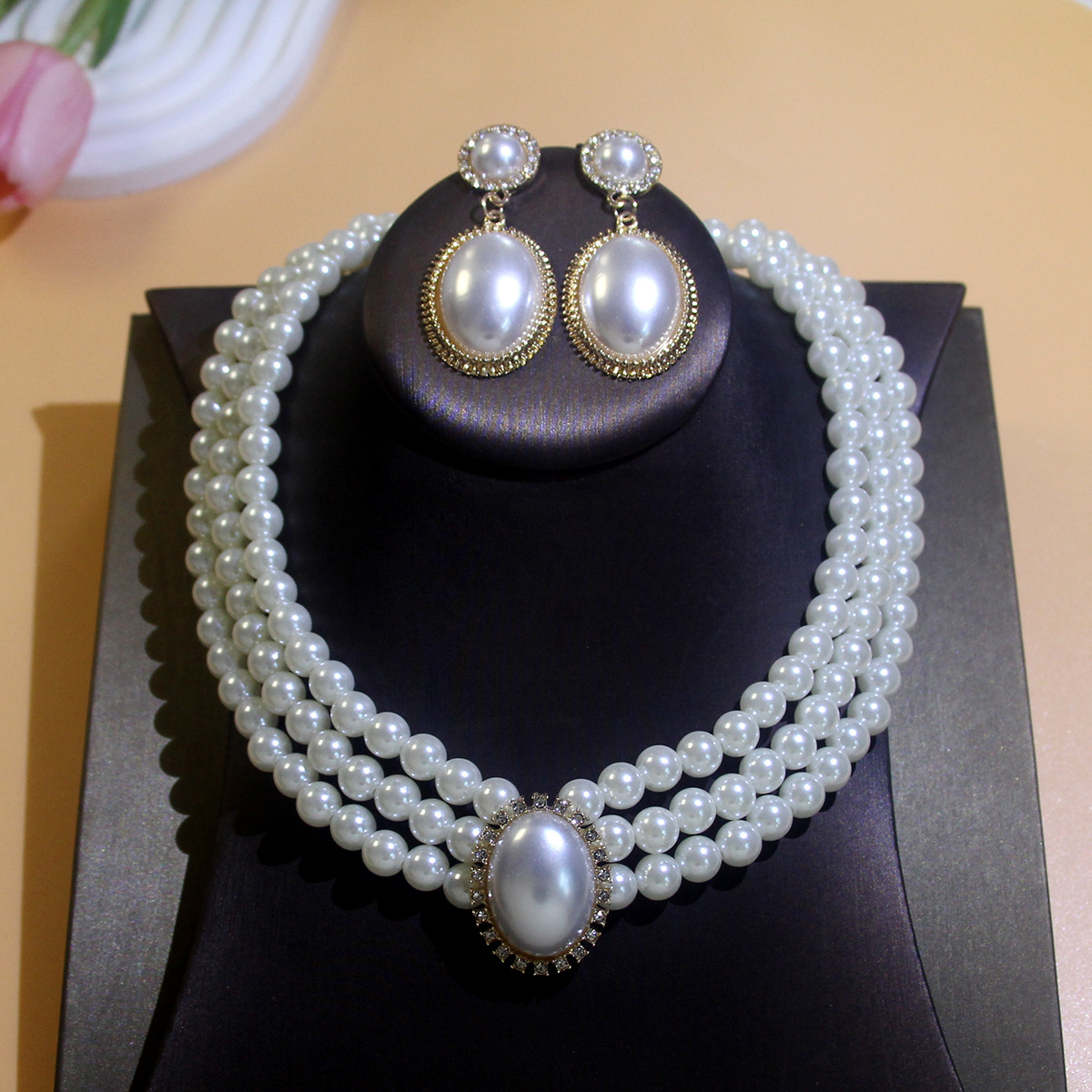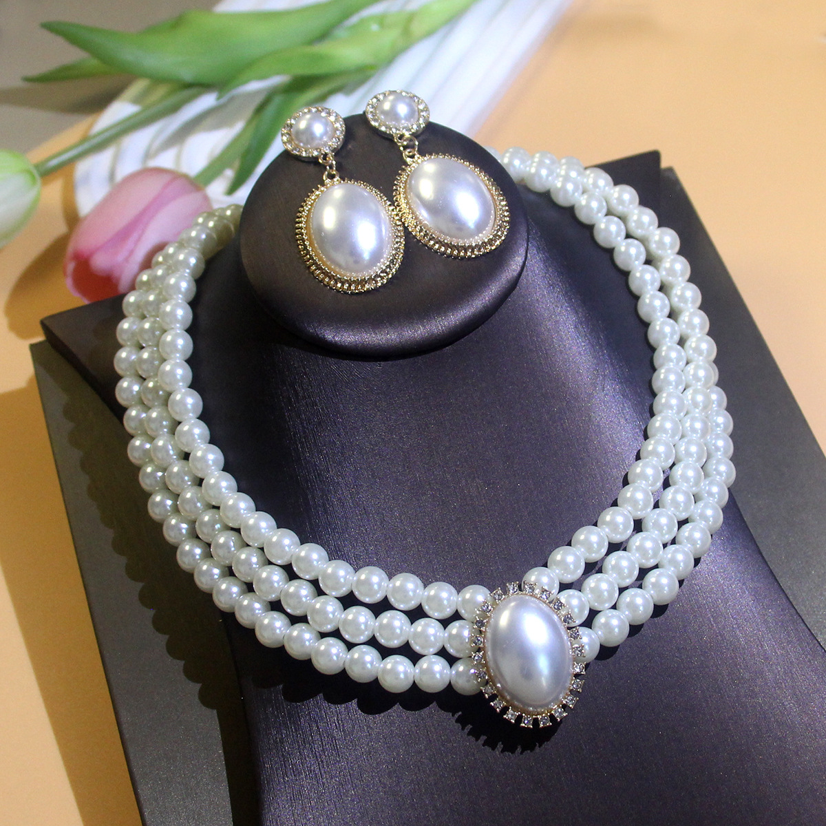 合金跨境仿珍珠复古新娘项链法式礼服秋配饰椭圆珍珠项链耳环套装