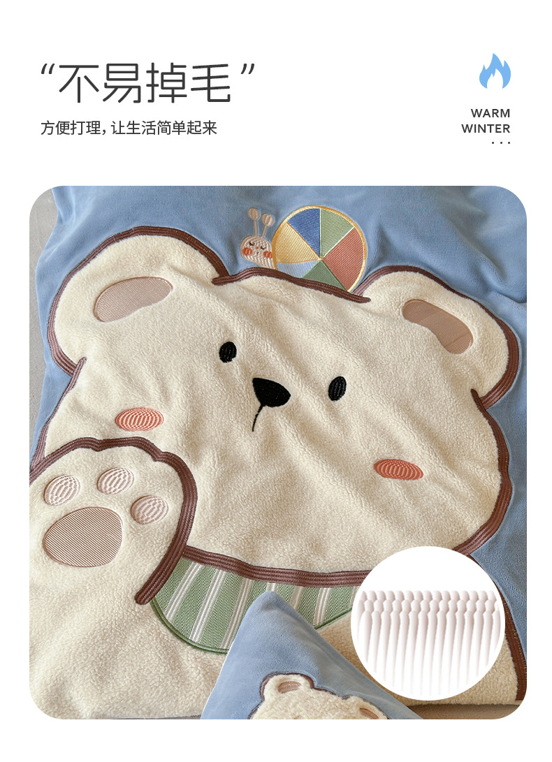 多愛喜美眠康ミルクベルベット寝具4点セット、コーラルベルベットシーツ、掛け布団カバー、フランネル寝具、漫画柄