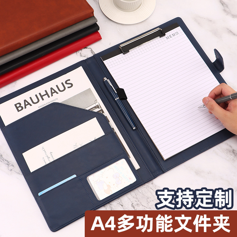 亚马逊文件夹a4单夹红色经理夹合同收纳夹皮质谈展业夹定制礼品