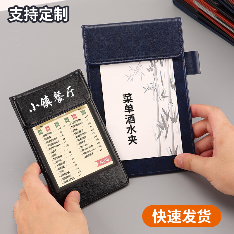 菜单夹餐厅点菜便签夹皮革A4会议夹写字板定LOGO收银票据夹酒店