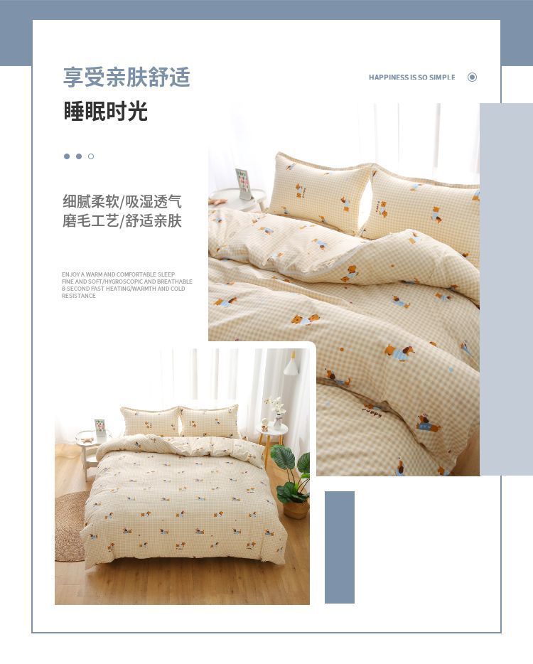 A類母子級水洗綿シーツ単体学生寮磨毛ベッド用品3点セットシーツ卸売り工場