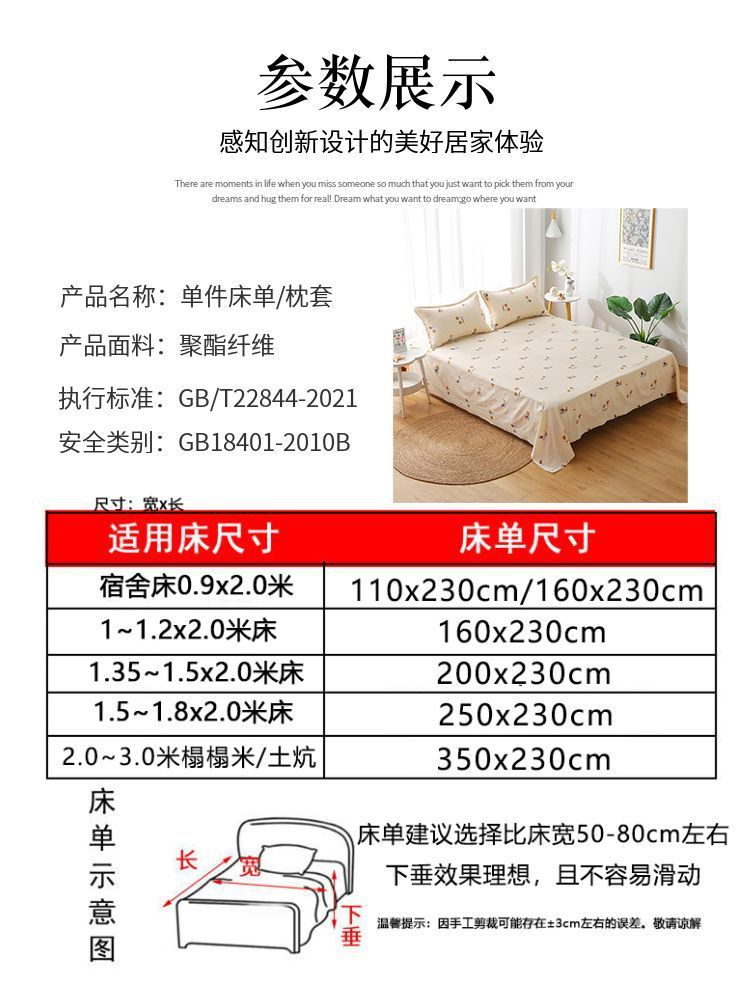 ベッドシーツ単品 100% 肌に優しいダブルシングルベッドシーツ学生寮枕カバー四季ユニバーサル工場外国貿易卸売