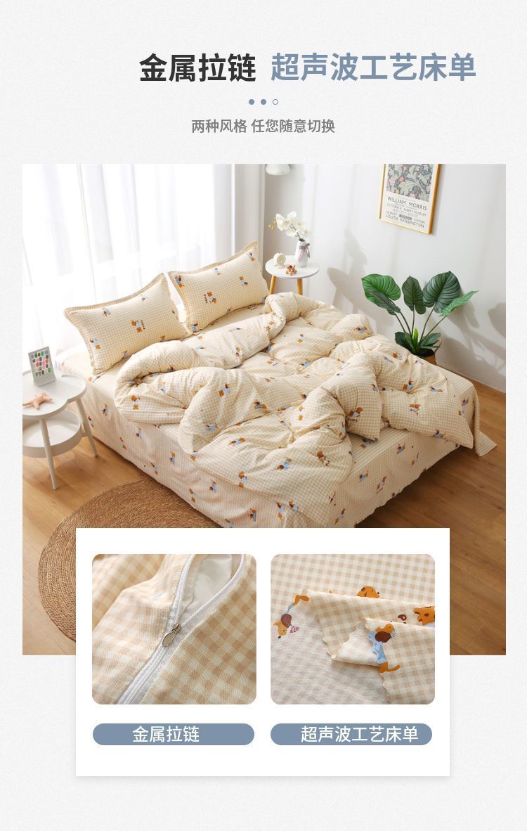 A类母婴级小清新双层纱床单件学生宿舍超柔水洗棉枕套被单三件套a