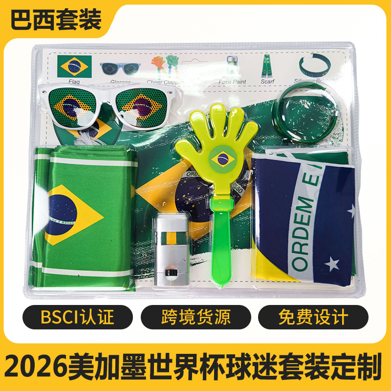 美加墨世界杯巴西球迷套装涤纶围巾眼镜手环拍拍手脸彩头巾旗帜