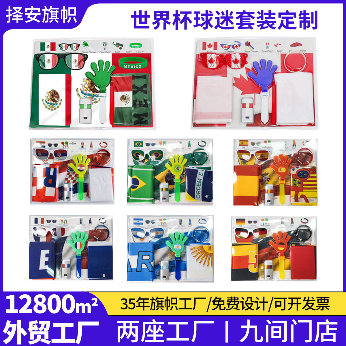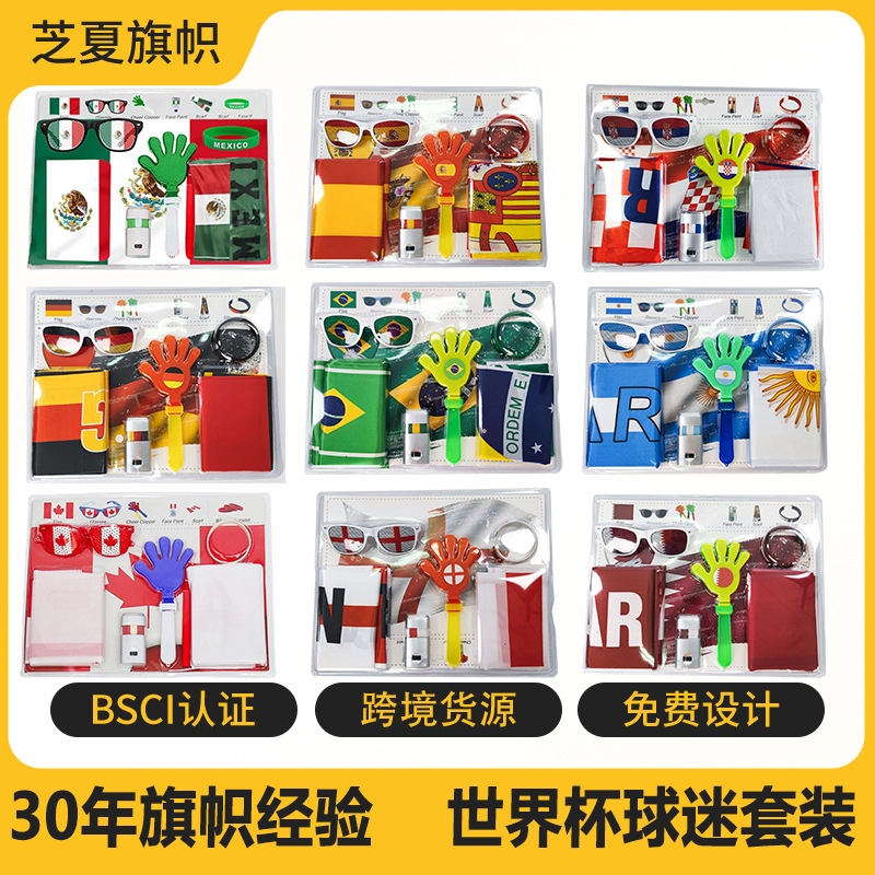 2026美加墨世界杯足球球迷助威道具眼镜拍拍手手环脸彩旗帜套装