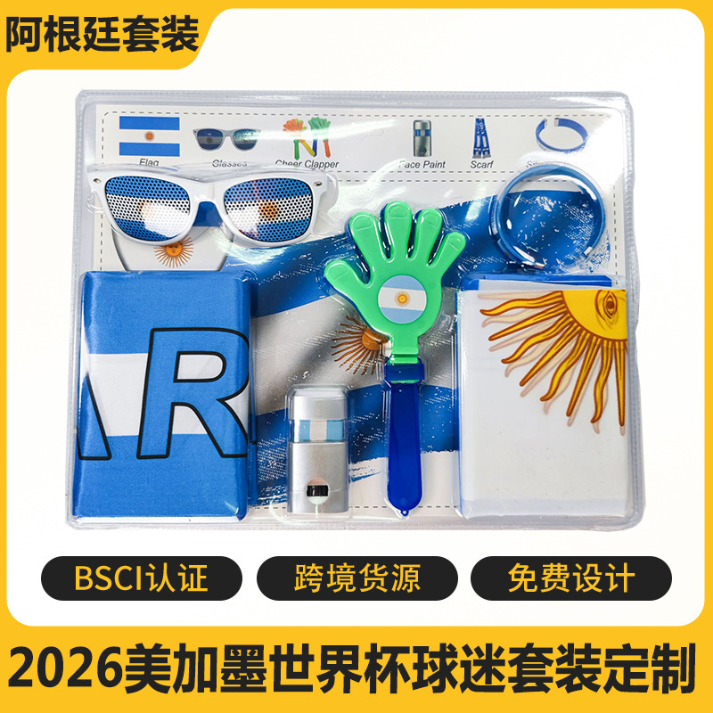 2026美加墨世界杯阿根廷足球球迷套装旗帜眼镜拍拍手脸彩助威道具