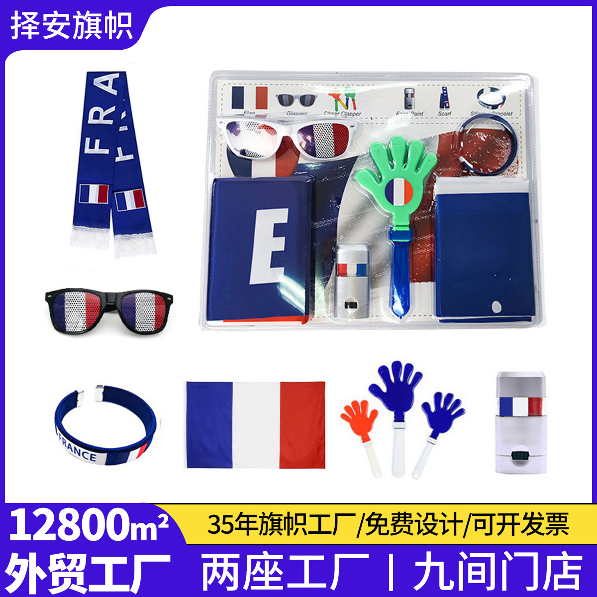 美加墨世界杯球迷套装法国涤纶围巾手环拍拍手脸彩眼镜头巾旗帜