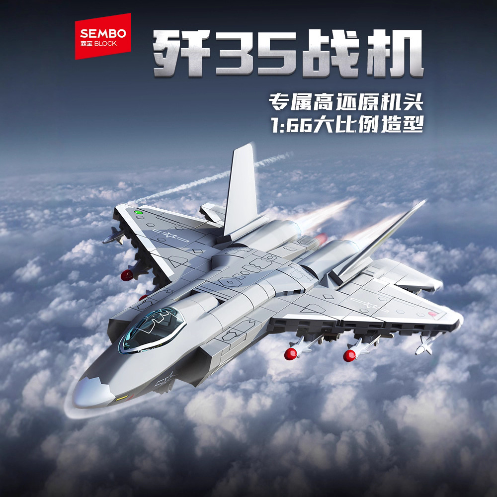 森宝积木歼35舰载战斗飞机航空军事拼装模型摆件益智男孩玩具礼物