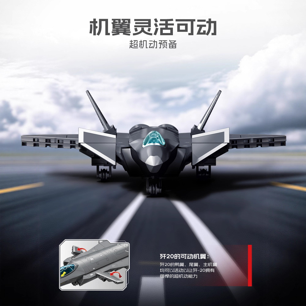 森宝积木2025新款歼20隐形战斗机组装模型男孩拼装积木拼插玩具