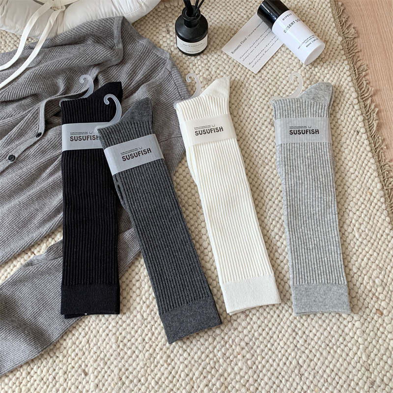 秋冬のふくらはぎの靴下の子供のストッキングjkと膝の靴下の縦条はやせている中筒の綿の靴下の黒い白い外は積み重ねの靴下を着ます。