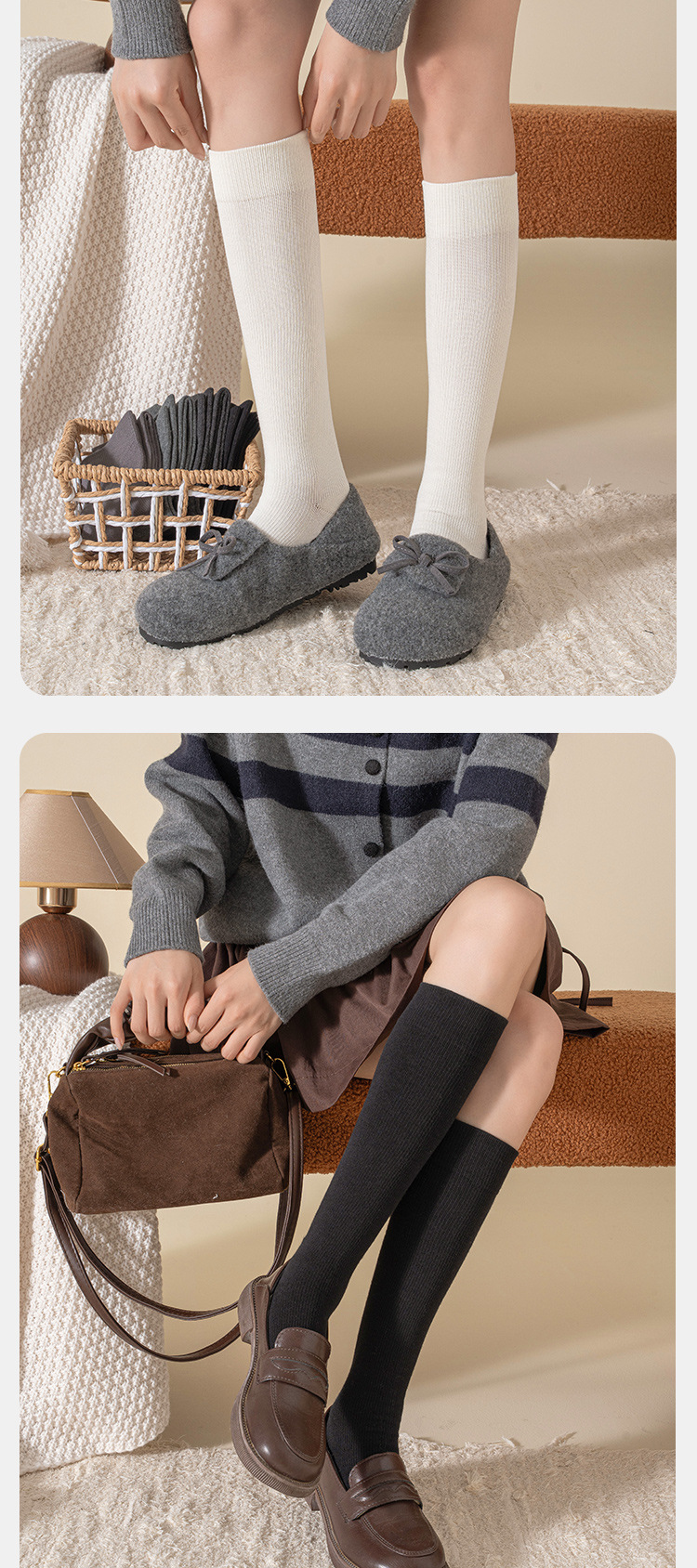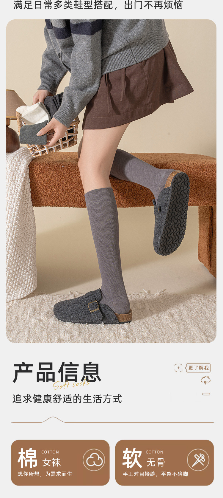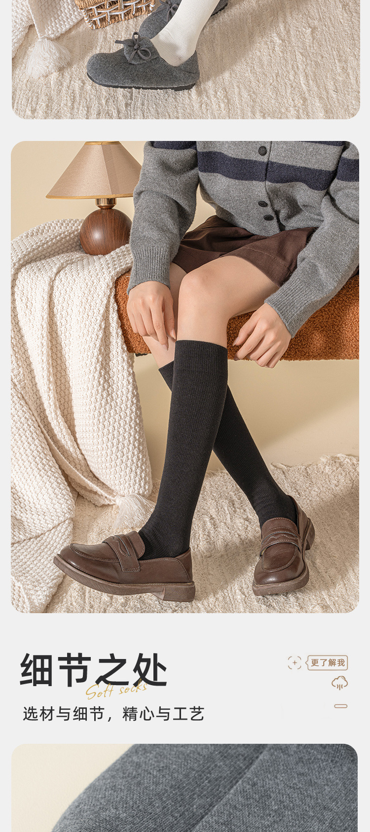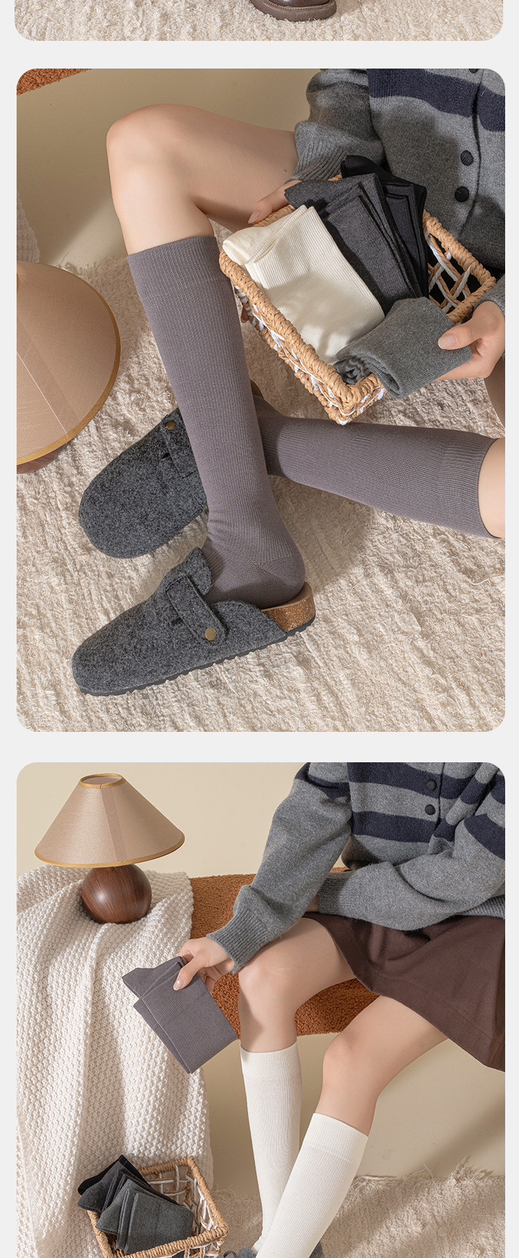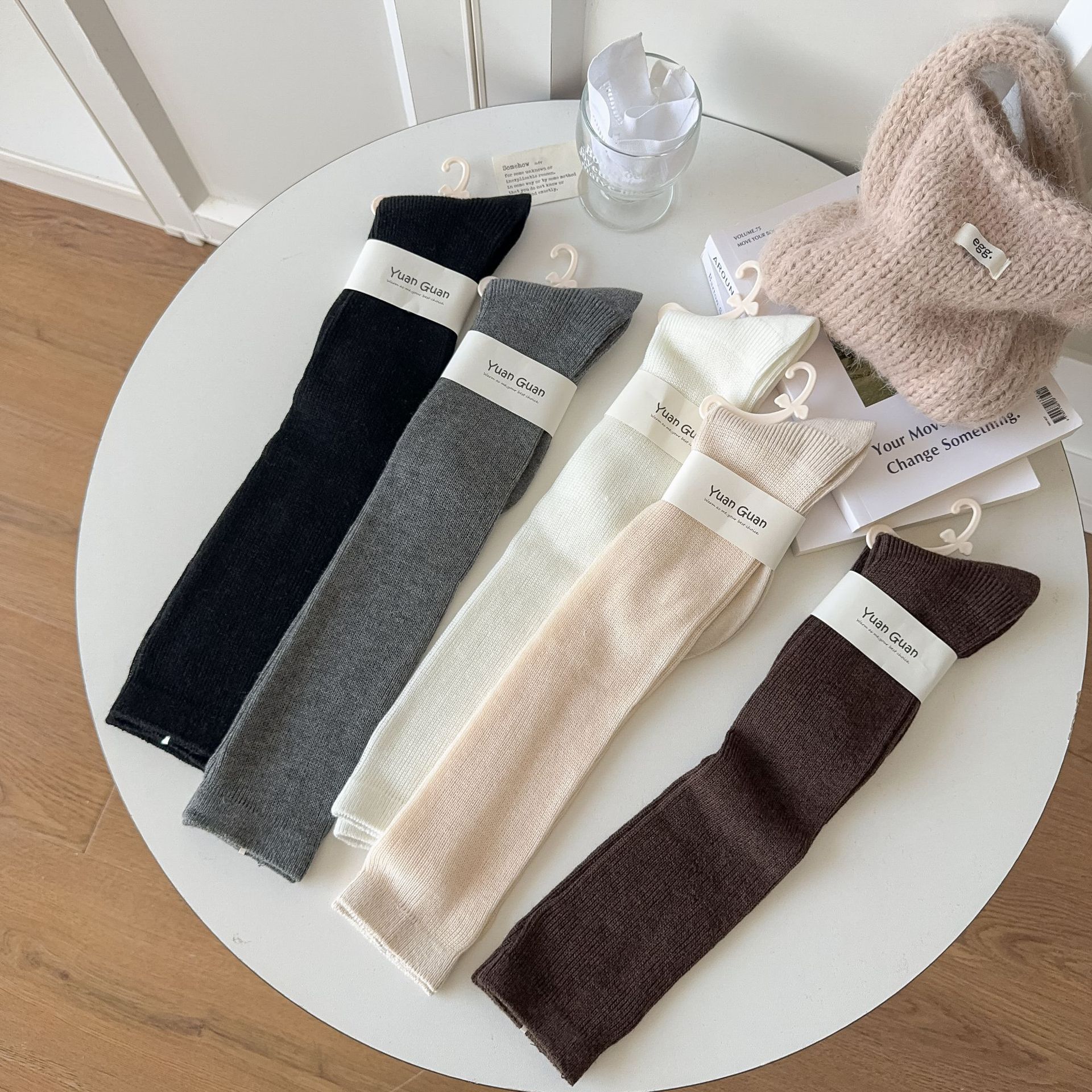 24秋冬新作ふくらはぎソックス純色メリヤス超柔らかいウールの長い筒の靴下と膝の靴下の卸売り