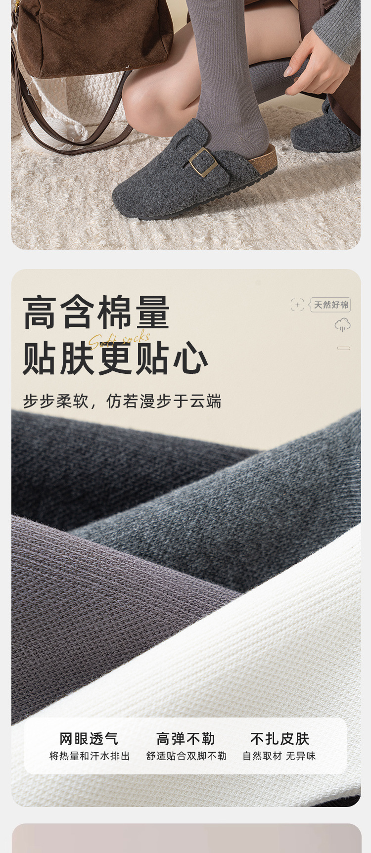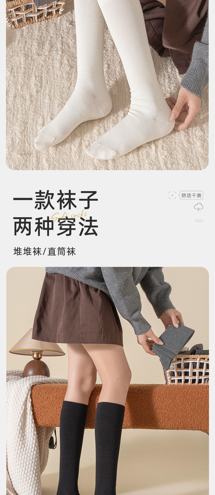 秋冬新小腿袜子女士纯色百搭微压显瘦长筒袜简约韩版芭蕾风堆堆袜