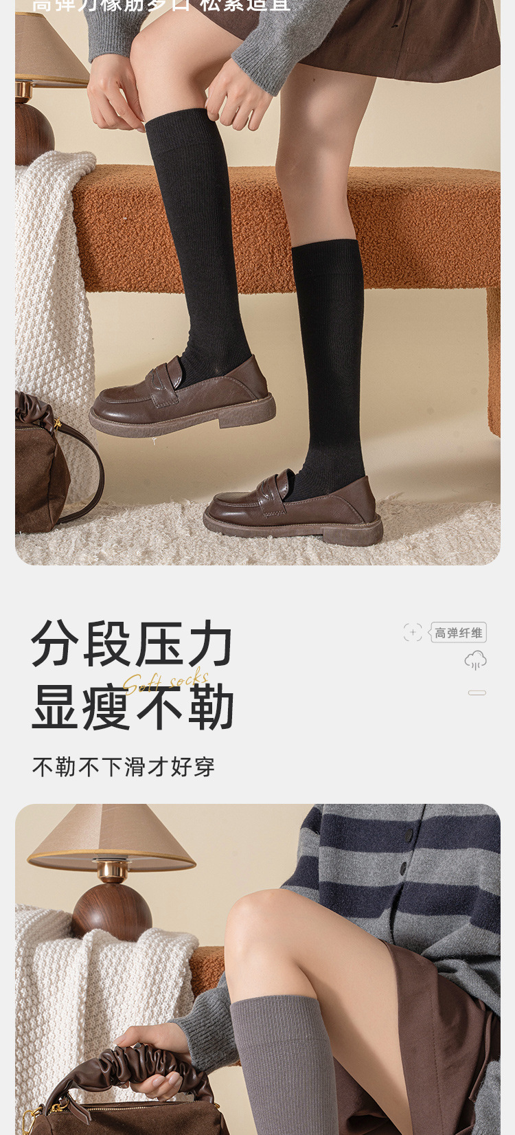 锦禾源秋冬微压小腿袜美腿显瘦点胶防滑过膝袜日系长筒无骨袜子