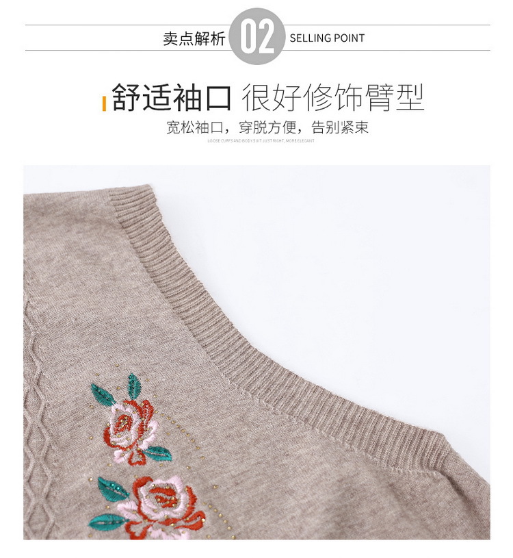 お母さんの丸首の薄いサイズのセーターの中で老年の婦人服は太って200斤の中高年の婦人服のニットウェアを増加します。