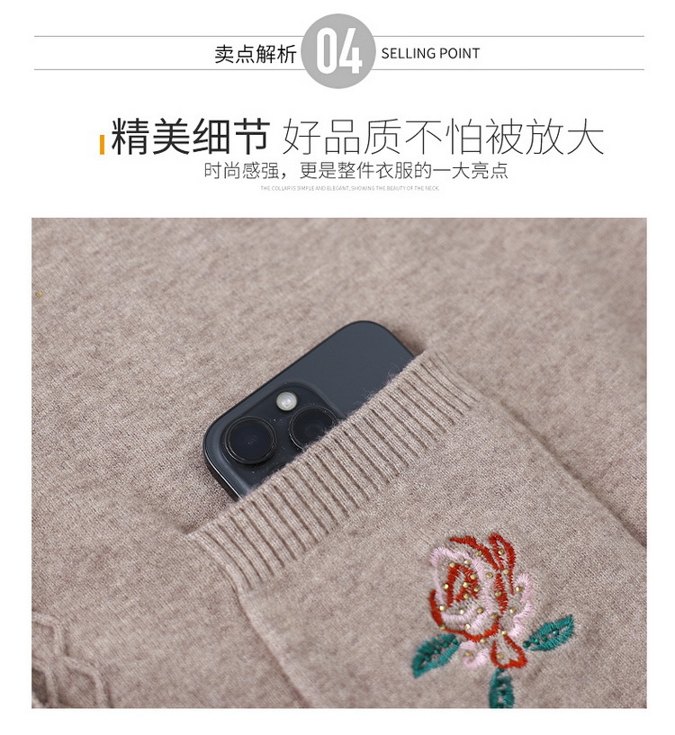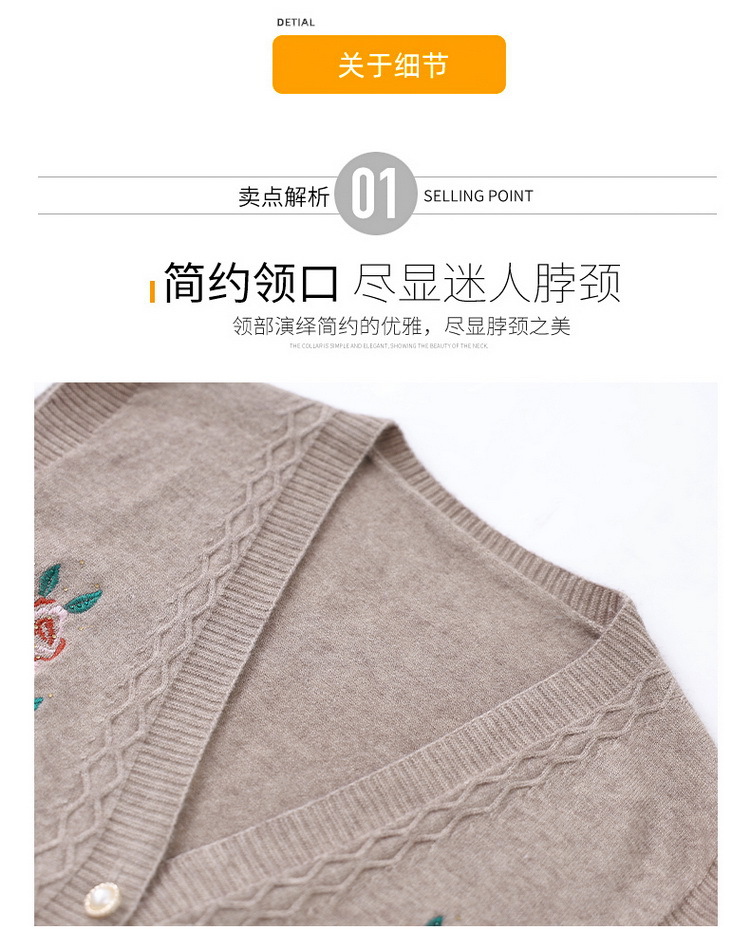 中年のお母さんは丸首の刺繍のカーディガンを詰めます。