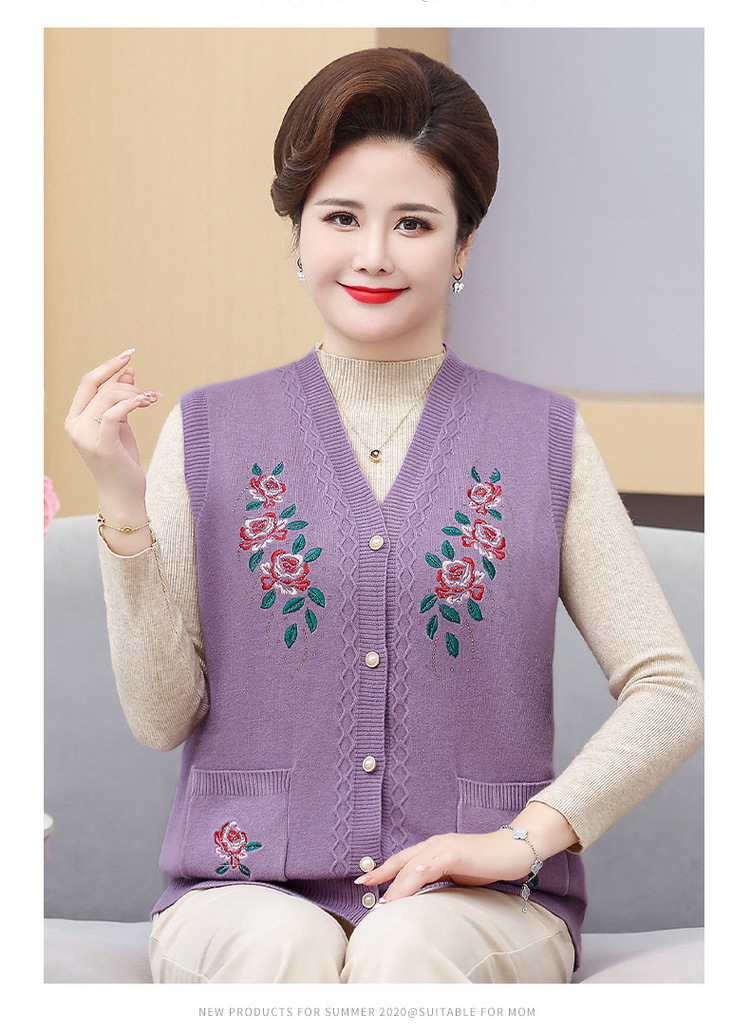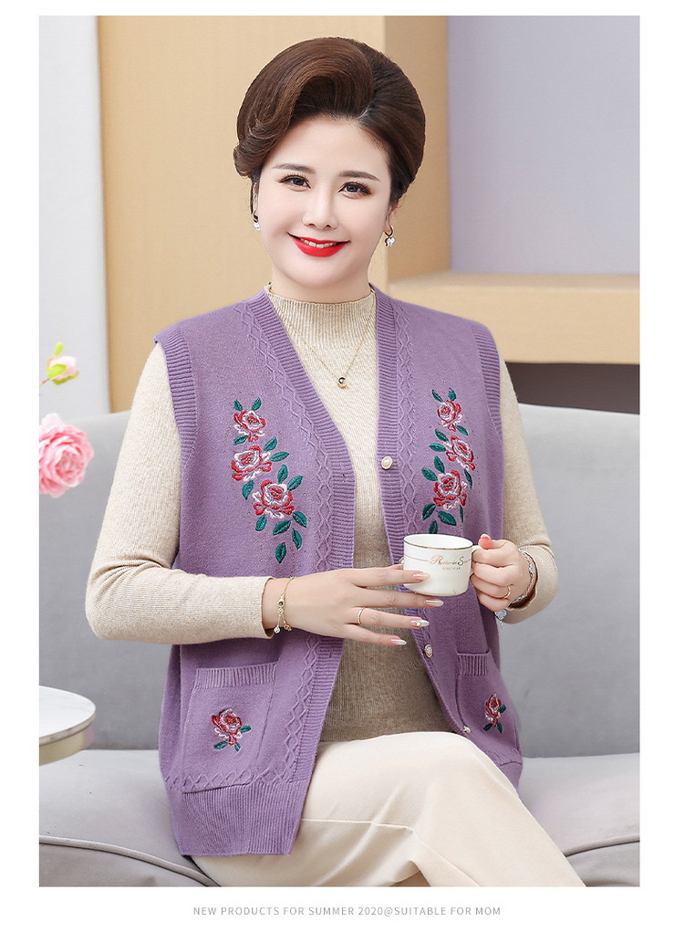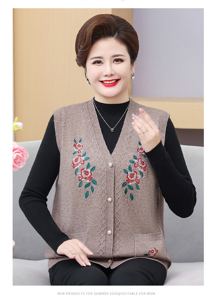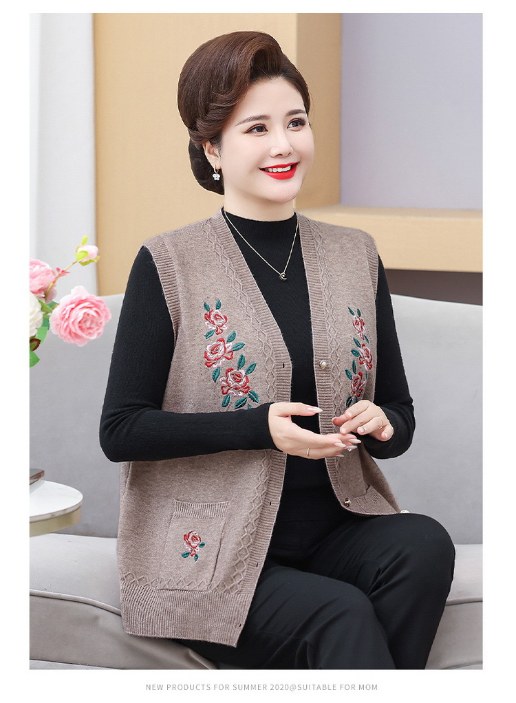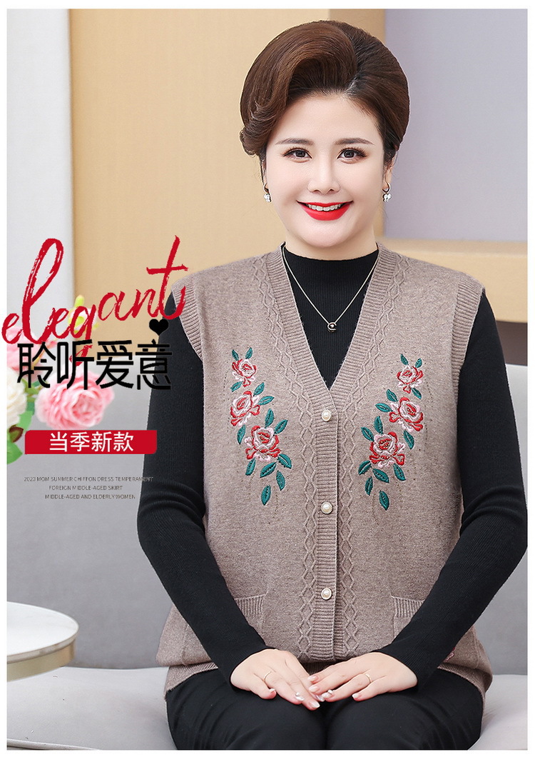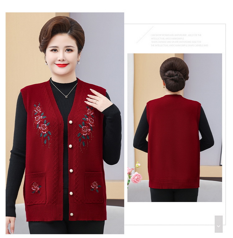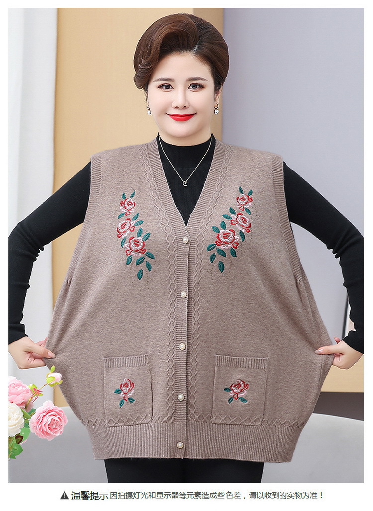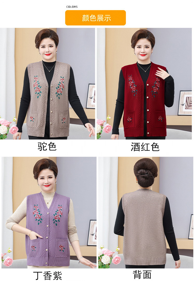 中高年ニット春秋保温ベストおばあちゃんセーターベストカーディガン