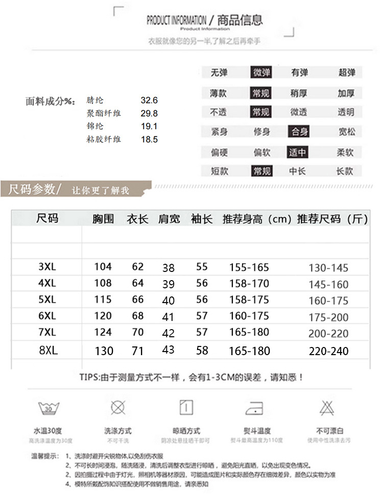 尺码 3XL,4XL,5XL,6XL,7XL,8XL