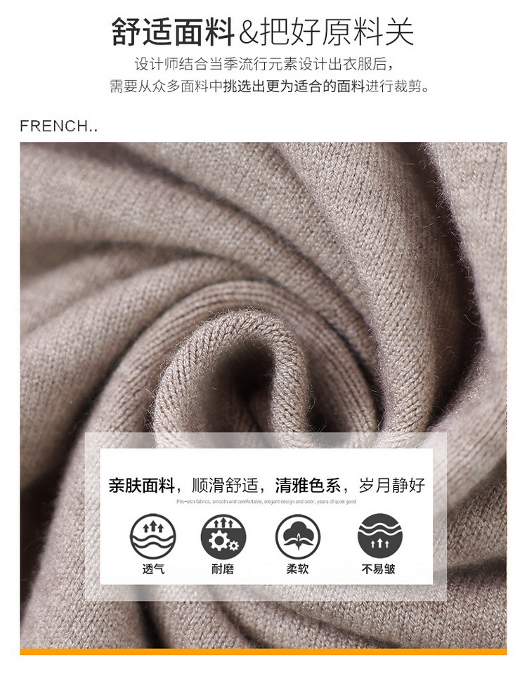 中年の女装は厚いベルベットの半高襟セーターの中で、高齢のお母さんは頭の大きいサイズのニットのおばあちゃんの上着を着ています